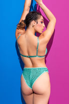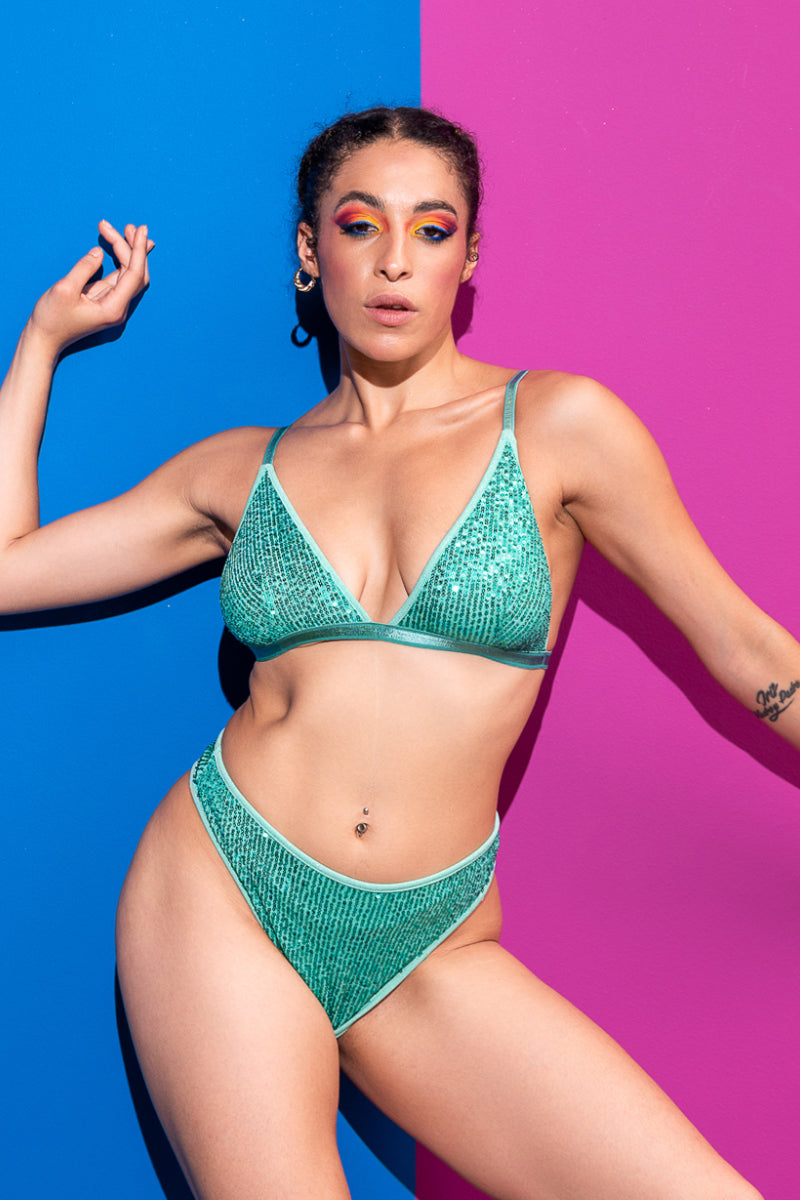 Make a splash with the RAD Aglow Sequin Bottoms in ethereal sea green! These high-waisted, fully lined beauties bring you ultimate comfort and moderate coverage. The shimmering sea green sequins exude tranquillity, capturing the ocean's serene and glamorous sparkle. Feel sexy and empowered as you dazzle in these striking bottoms.