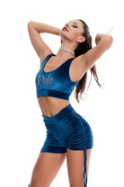 Looking for the perfect blend of comfort and style? The RAD Y2K Playtime Top in rich lapis has you covered! This buttery soft velvet piece offers a reversible design, full support with a stylish scoop neck and a chic V-back strap design. Sparkling iridescent rhinestones add a cheeky touch to your look!