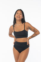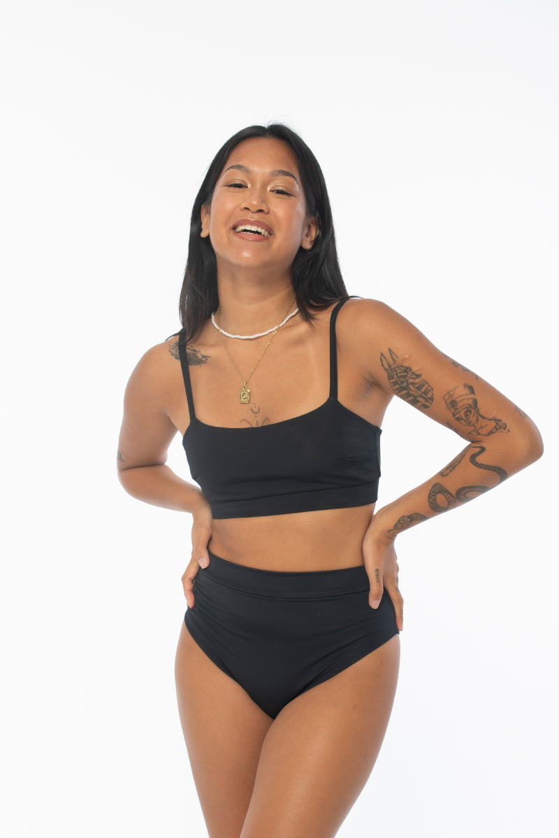 • Stretchy | Soft fabric | Recycled | Resistant to sun creams and oils | Protection against UV rays | Adjustable Strap | Square Neckline