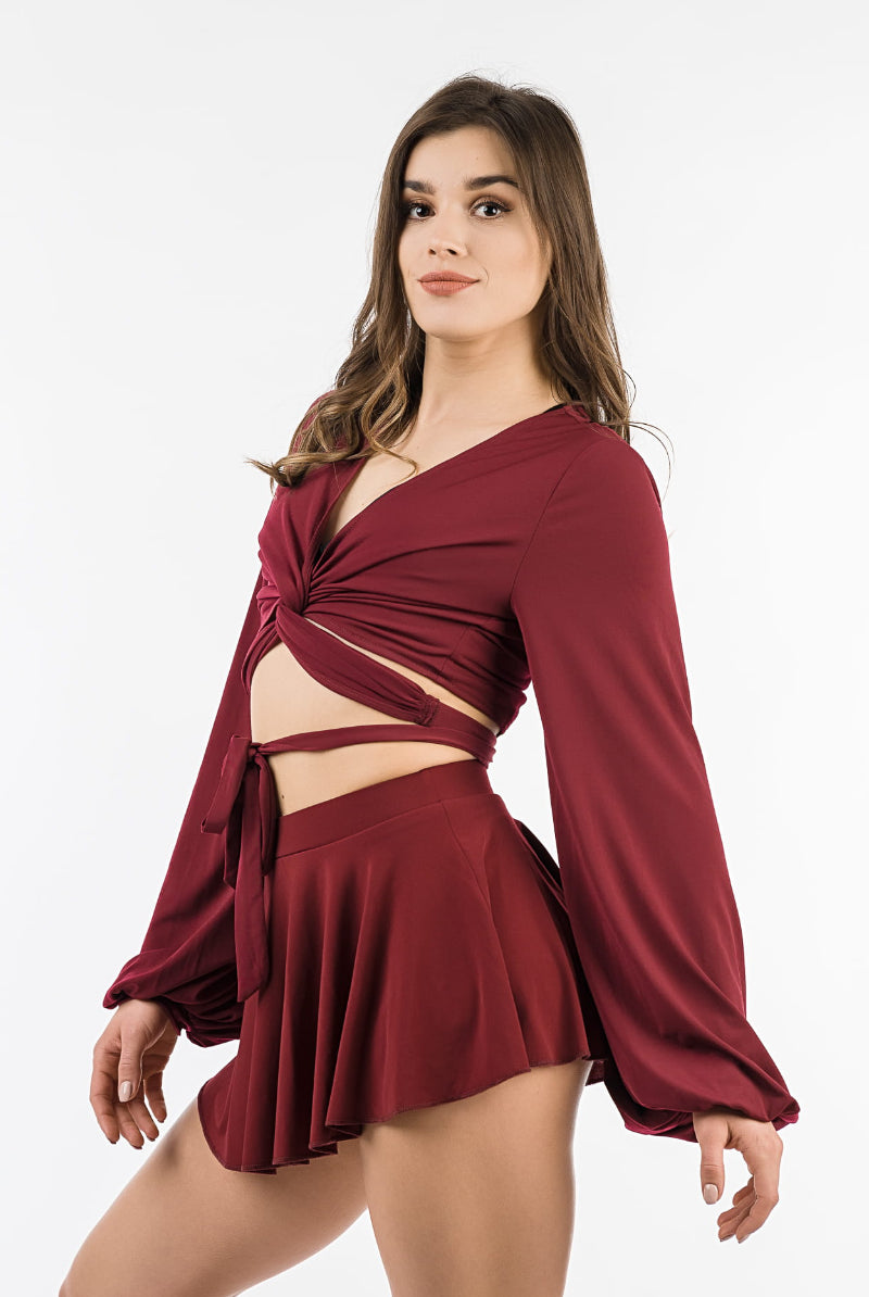 REV ACTIV Mesh Wrap Blouse - Wine