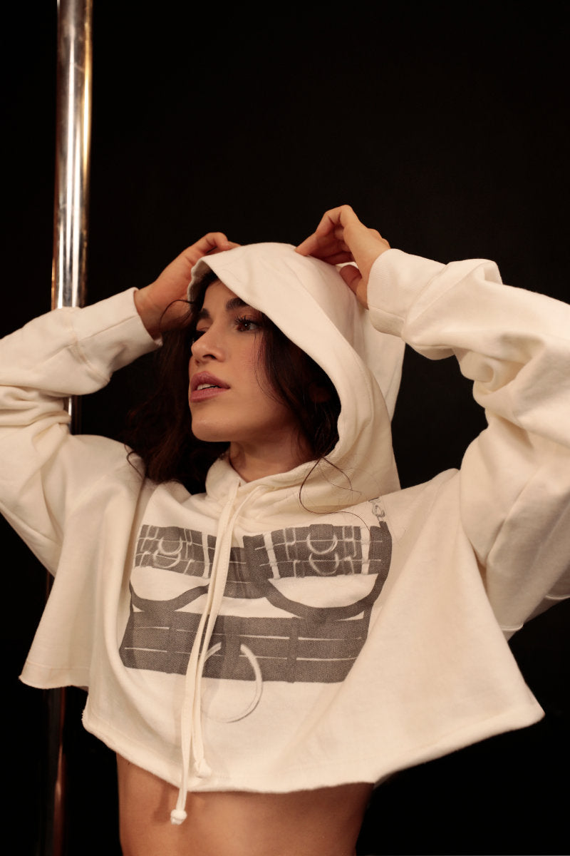 Rolling Mimeo Cropped Hoodie Halo Bralette - White