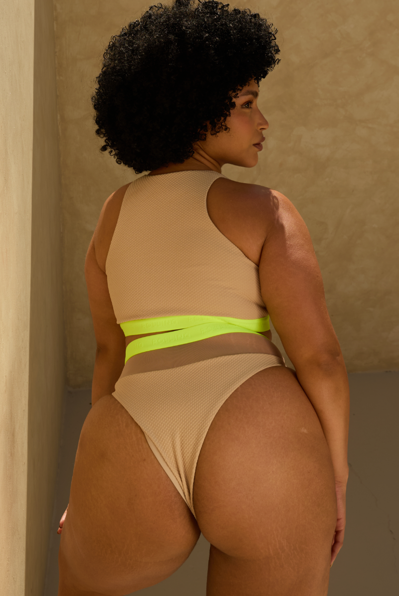 Rolling Alpha Balconette Top - Beige/Neon Yellow
