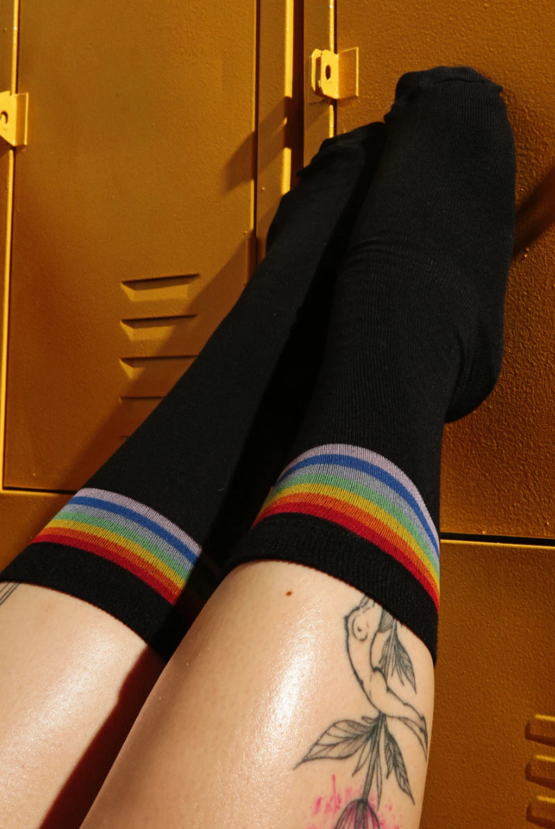 Rolling Over the Knee Transparent Banded Socks - Black (3 Sizes Available)