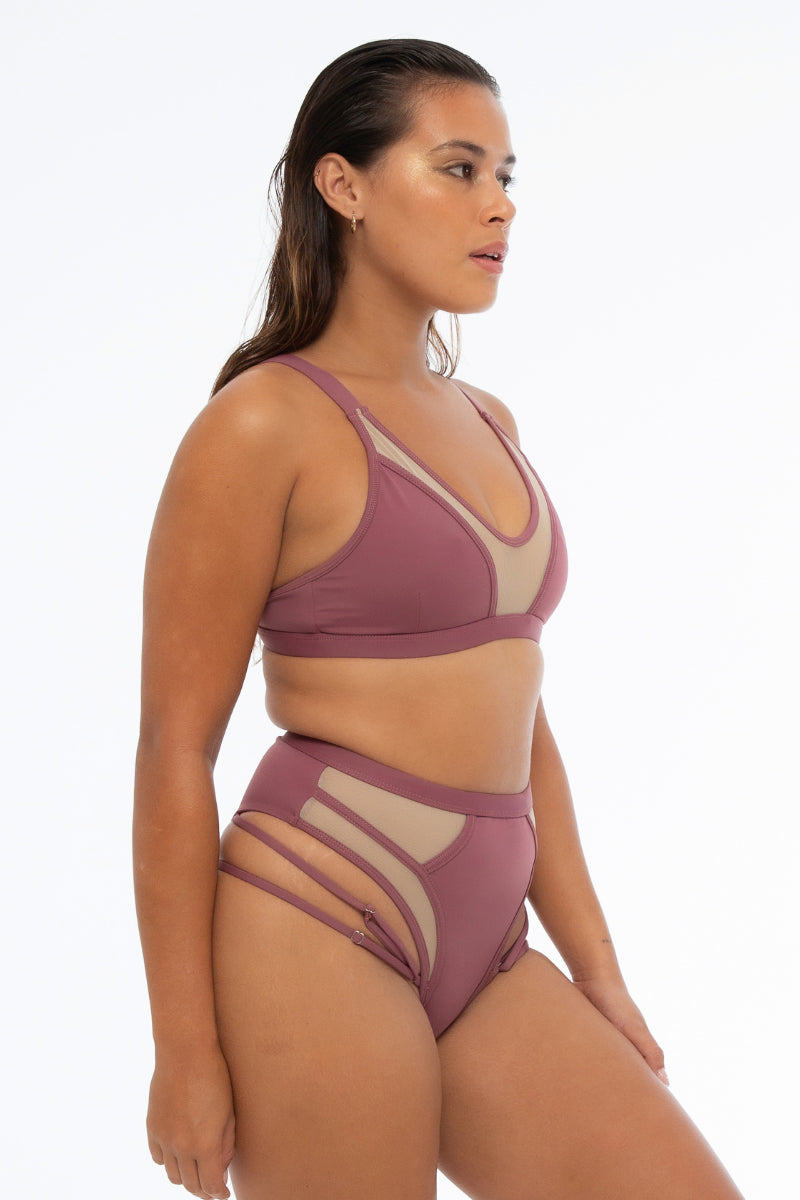Your new favourite go-to for both comfort and style. Designed with a V-neckline and offering high support, it's perfect for those with slightly bigger busts. The adjustable back straps and convenient on/off back hook ensure a customized fit every time. With mesh front detailing that perfectly complements the Solace Bottoms, this top is as versatile as it is flattering.