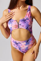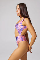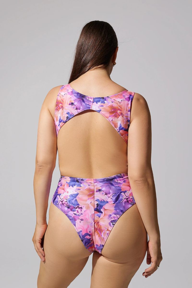 Echoing the soft bloom of dawn, this cheeky bodysuit with high-waisted design frames your silhouette 🌸. The discreet front zipper, scoop neck, and open back come together in a pastel floral print, capturing the delicate charm of morning light.