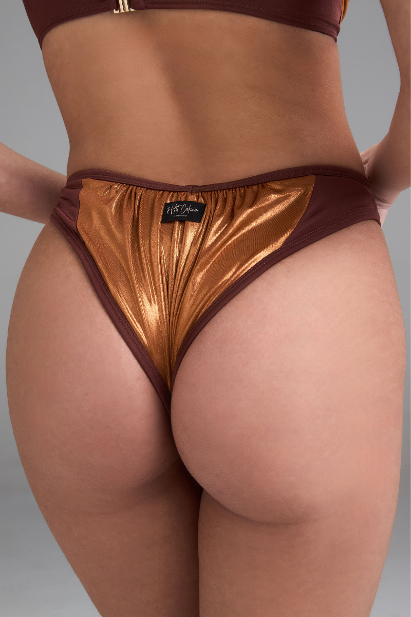 Turn heads and leave them spellbound with a cheeky cut that dares to defy the ordinary, these bottoms shimmer like a bronze shield under the spotlight, channelling the fierce allure of mythological Medusa herself. The metallic finish catches every beam of light, making your movements look nothing short of mesmerising.🐍✨