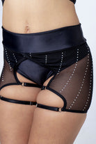 Slip into the dreamscape with Illusion Bottoms—high-waisted, double-lined, and fully adjustable for a flawless fit. The playful dance of soft lycra, mesh garter belt, and sparkling accents makes these bottoms a true standout.