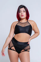This bold design combines silky Brazilian lycra with a sparkling fishnet garter belt for a stunning high-waisted look. Featuring a cheeky booty cut and adjustable leg garters, these shorts sculpt and lift, making sure you shine on the pole or in the spotlight.