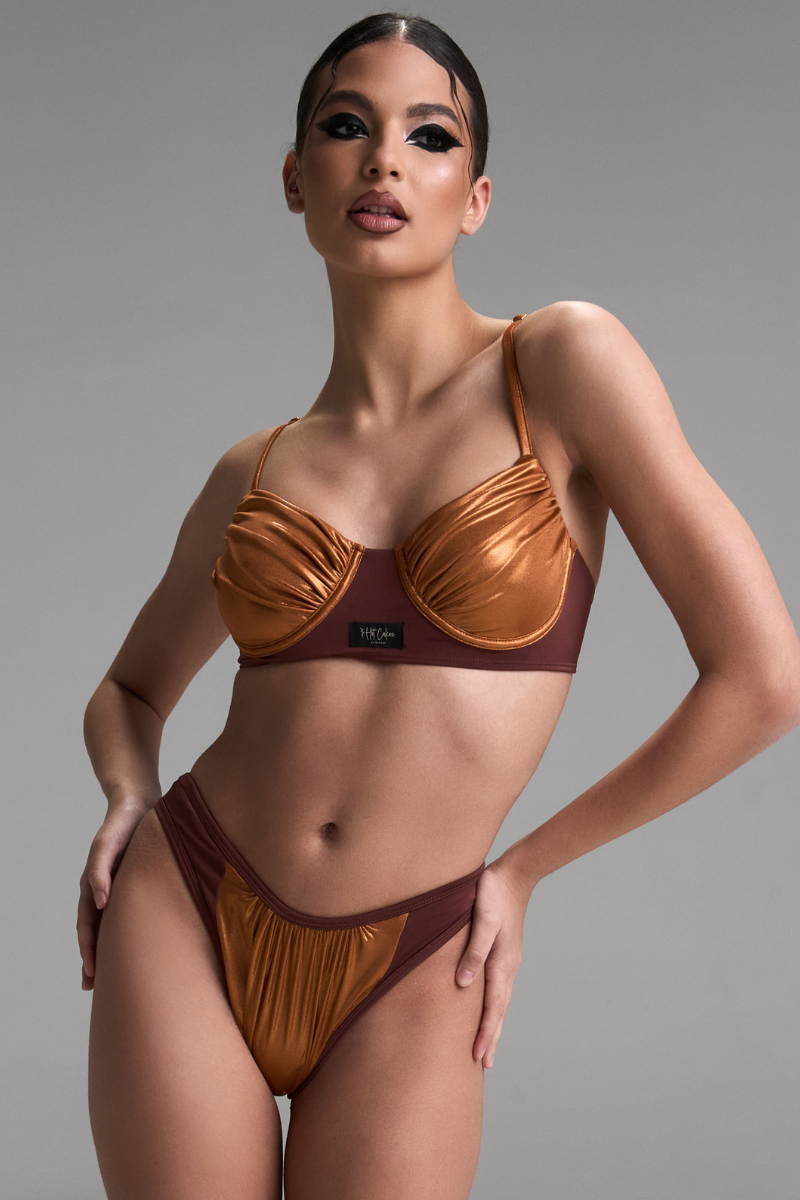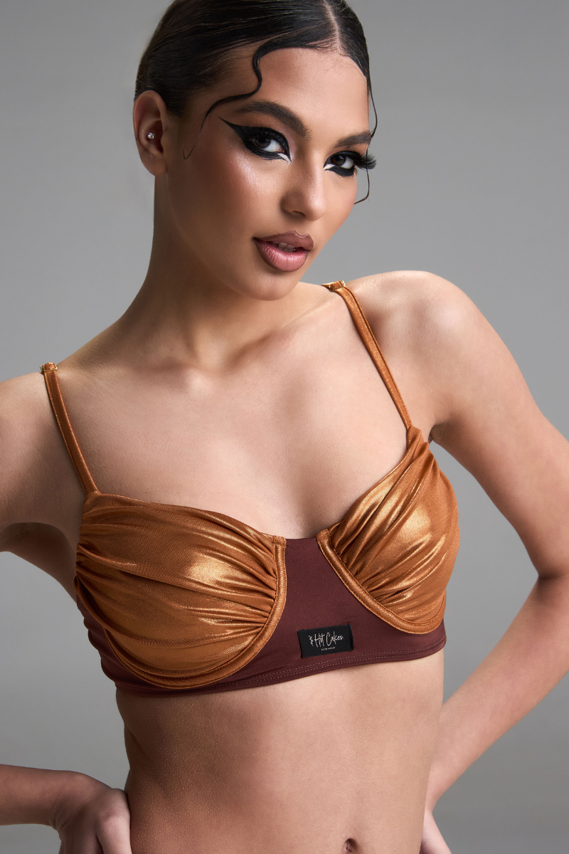 Turn heads and own the room 🐍. With structured underwire cups, a secure clasp back, and a metallic sheen that gleams like liquid gold, this bold top is all about confidence. Slick, striking, and dripping with goddess energy—shine unapologetically. ✨💫