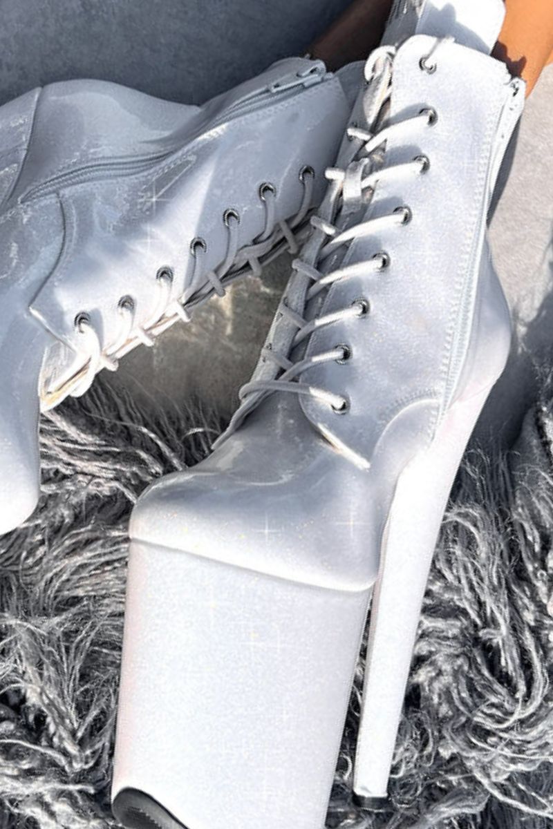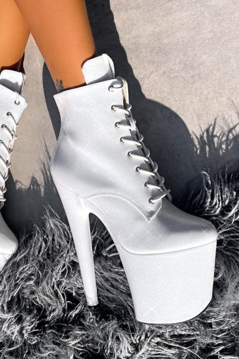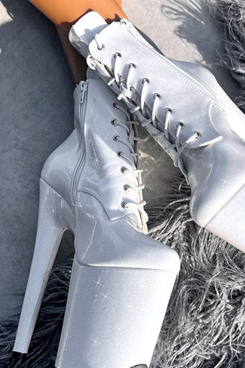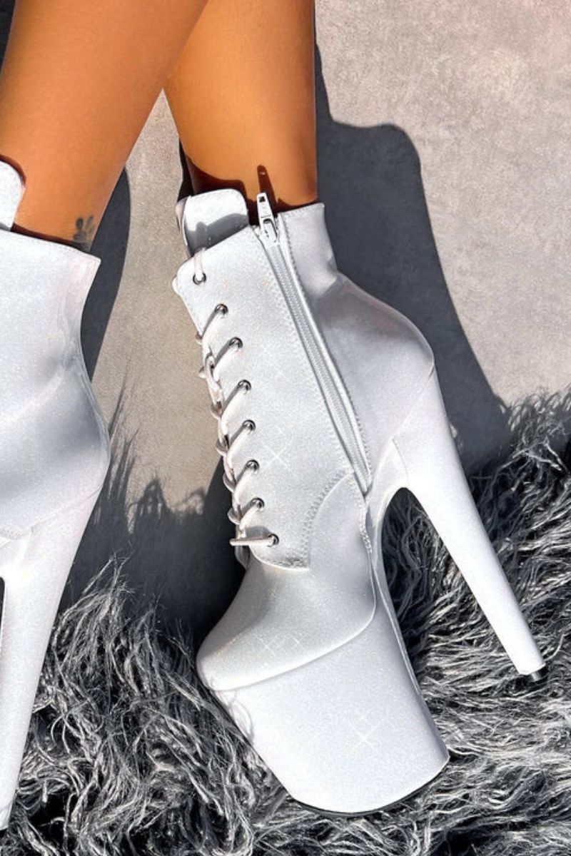 Hella Heels The Glitterati 8inch Ankle Boots - Snow Kween