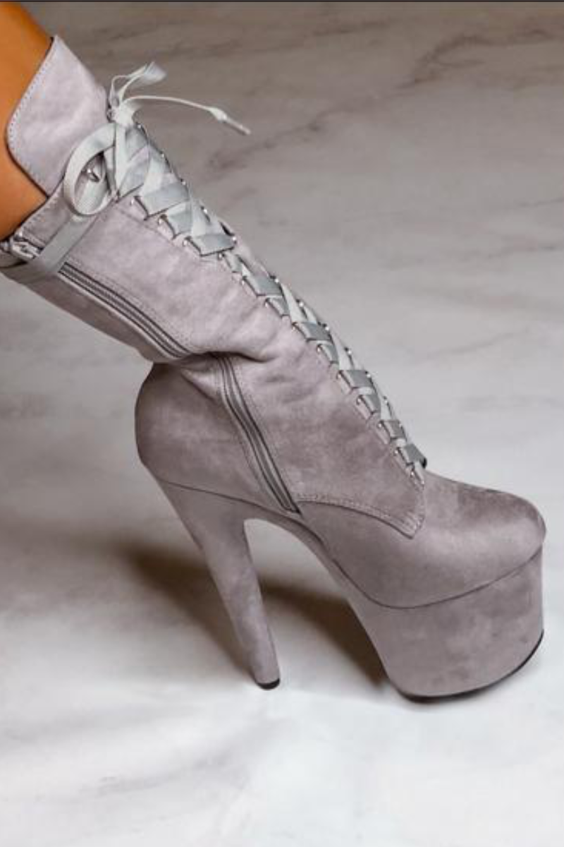 Hella Heels High BabyDoll 7inch Boots - Light Grey