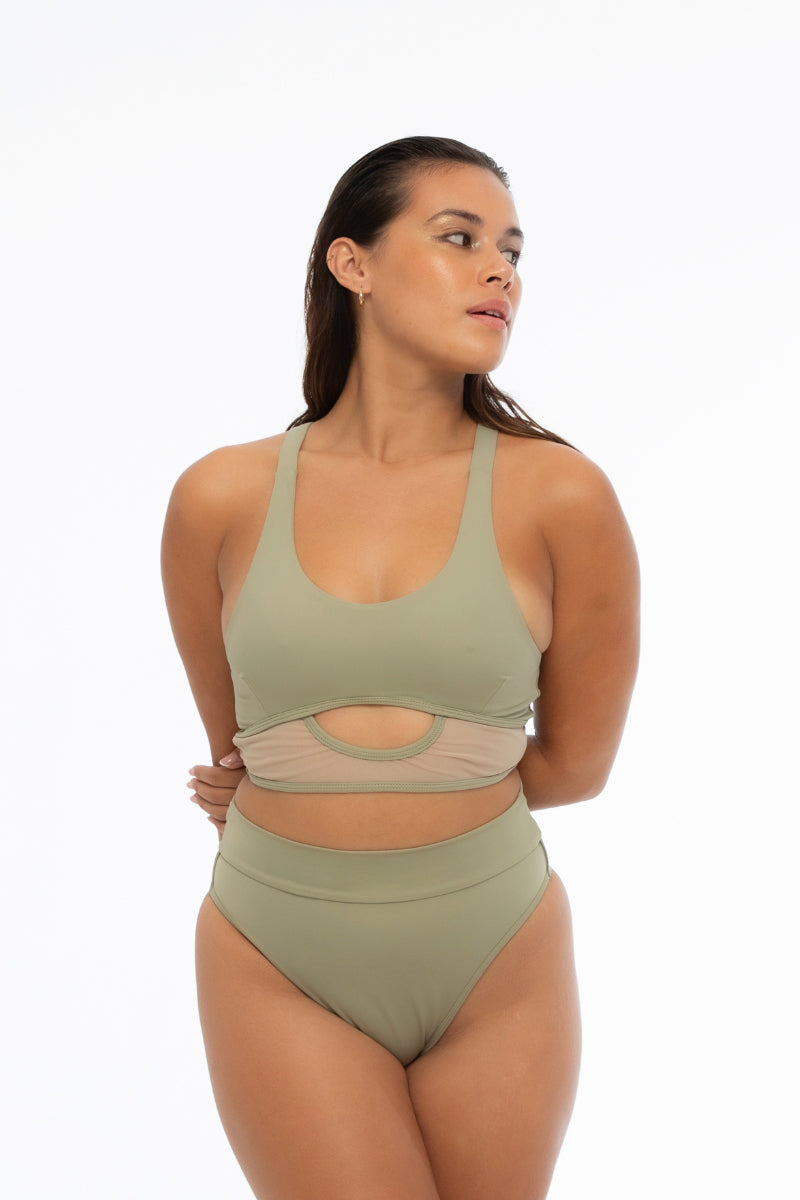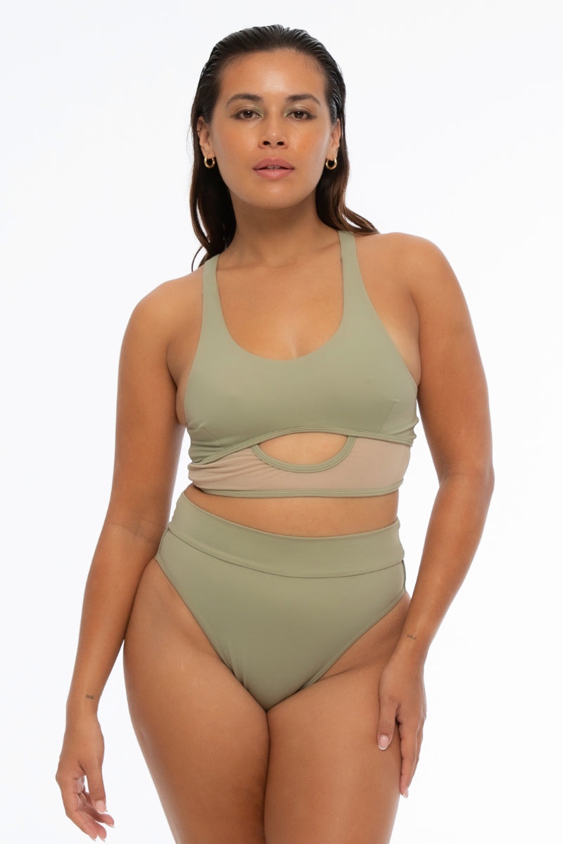 Lunalae Loretta Mesh Cut Out High Waisted Bottoms - Satin Magenta