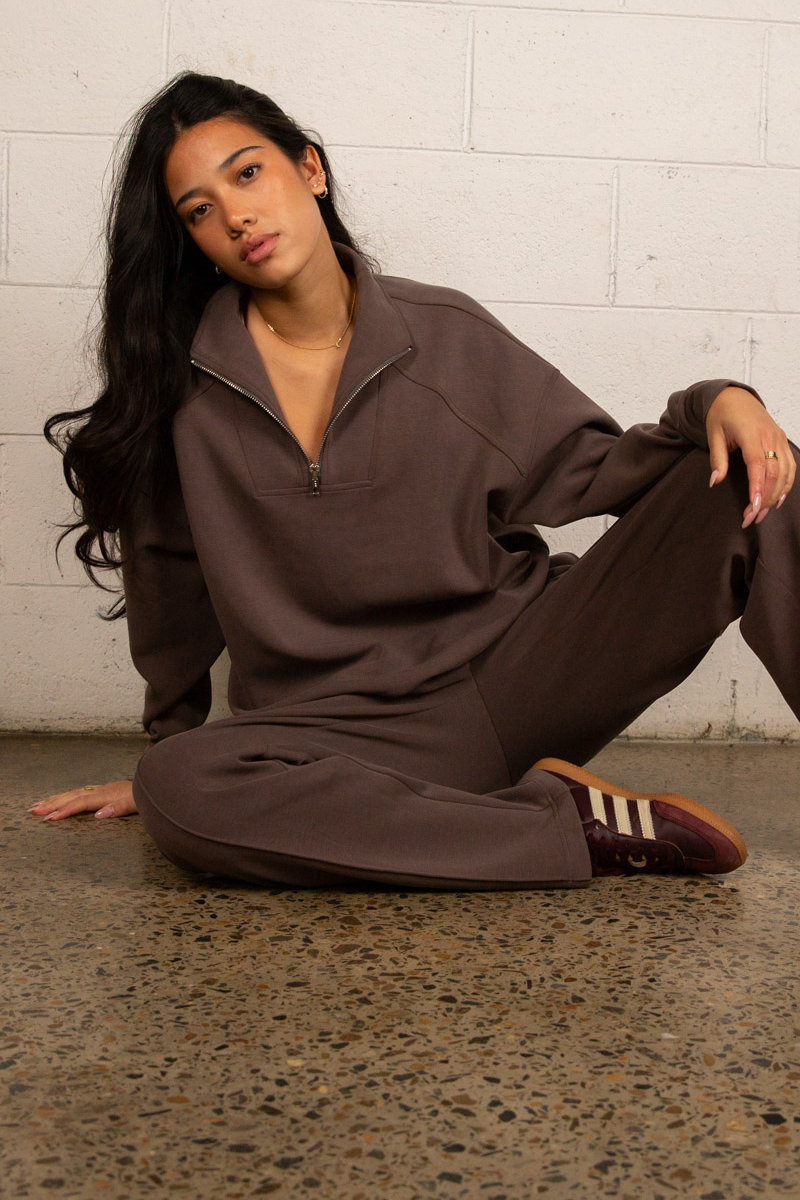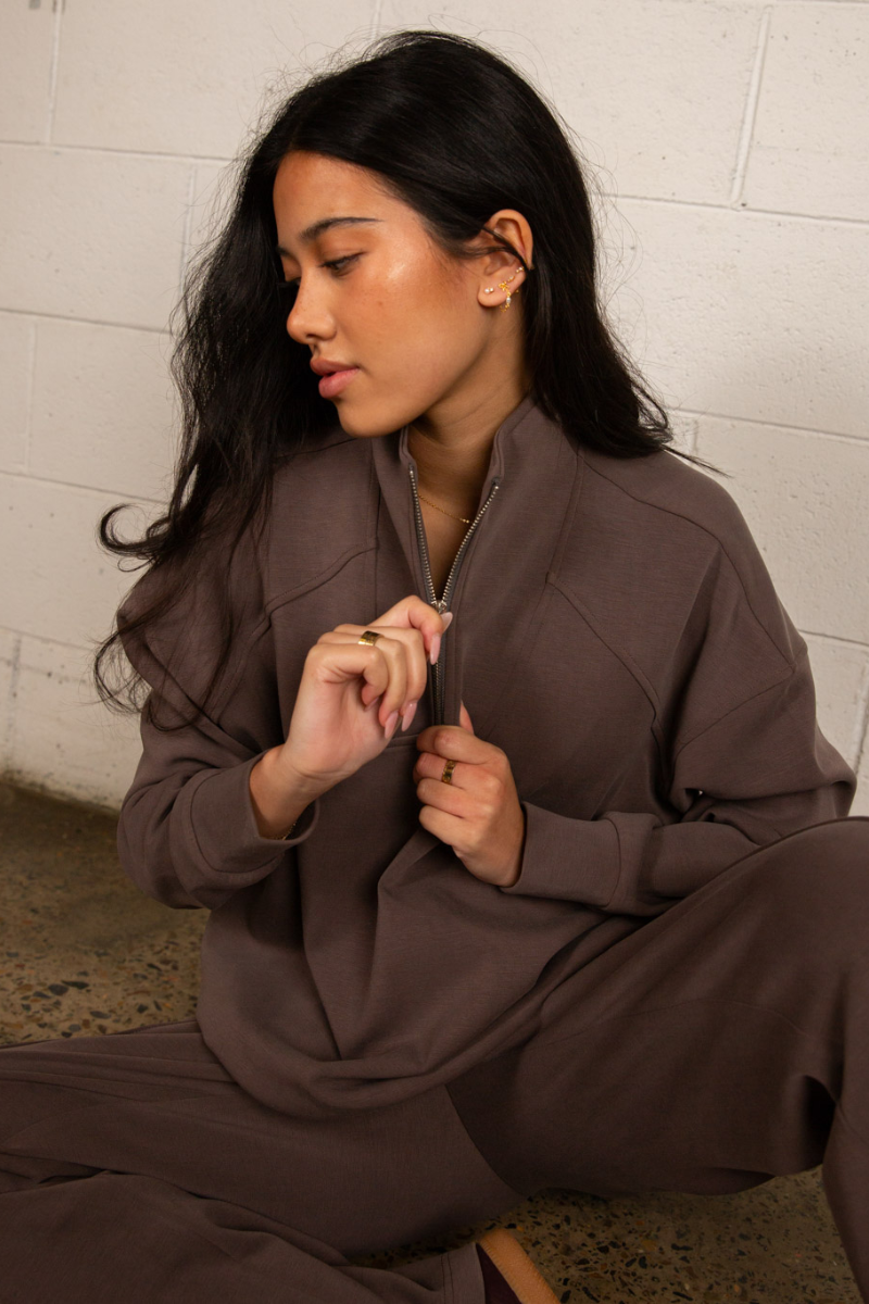 Tatiana Active Cairo 1/4 Zip Sweater - Chocolate Brown