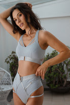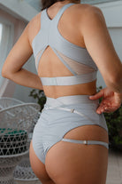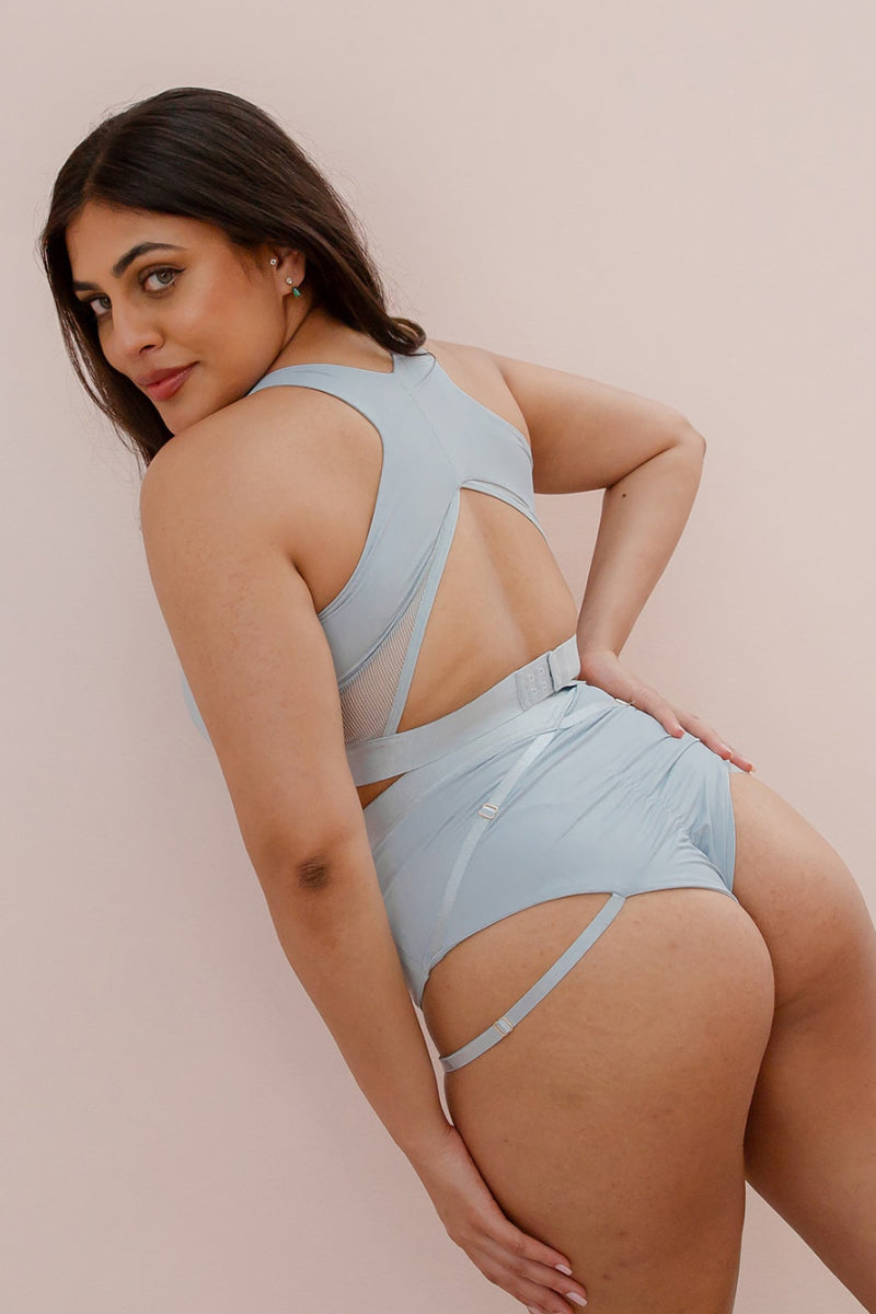 • High Waist | High leg | Soft elastic waistband | Gold hardware and mesh detailing | Adjustable garter straps | Fully lined with 2 layers | Scrunch bum | Wide crotch coverage