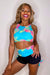Designed with comfort and beauty in mind. This stunning crop features a high neck and open strappy back. Crafted from high quality recycled materials to reduce environmental impact,
