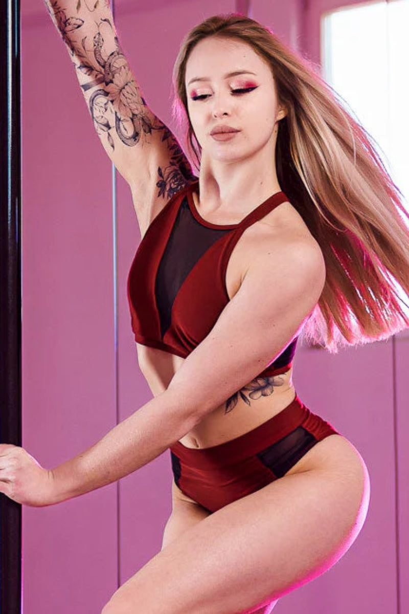 The bra for the goddess is here! Victoria is both a comfortable bra for everyday training and a super sexy piece for performances of any kind. The top features a halter neck design with double shoulder straps and comfortable mesh contouring the body.