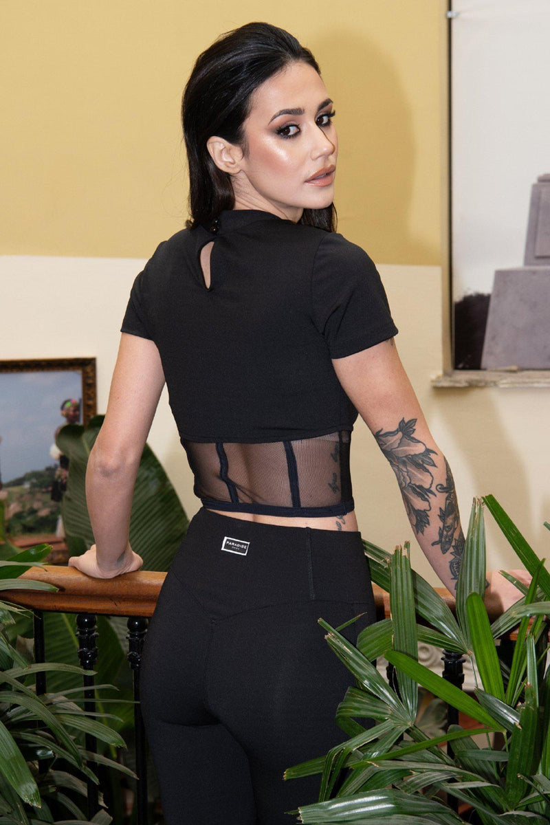 Sexy polewear meets street wear. This cap sleeved top features a mesh corset style underbust panel that is seriously HOT look 🔥