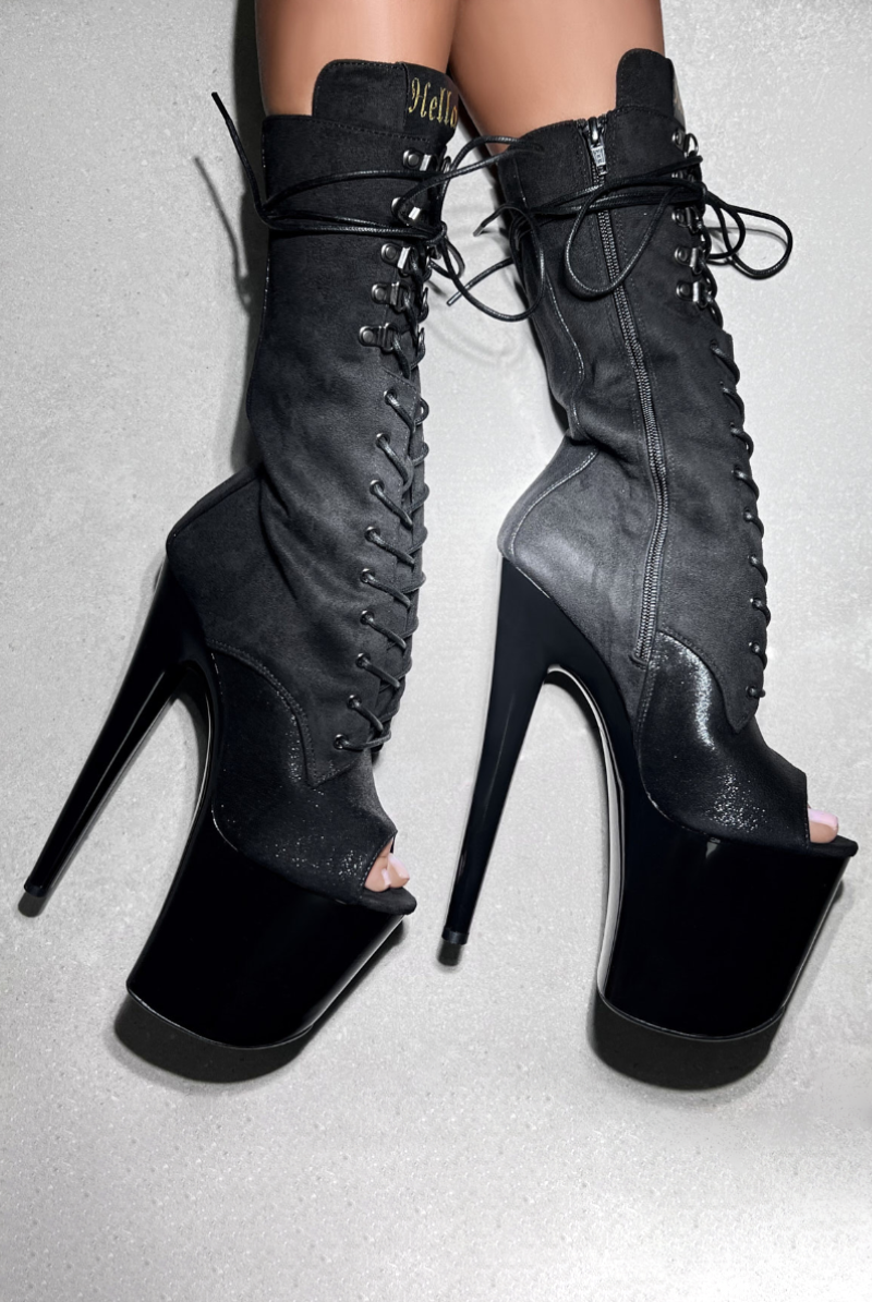 Hella Heels Blaq Kicks Open Toe 8inch Boots - Black