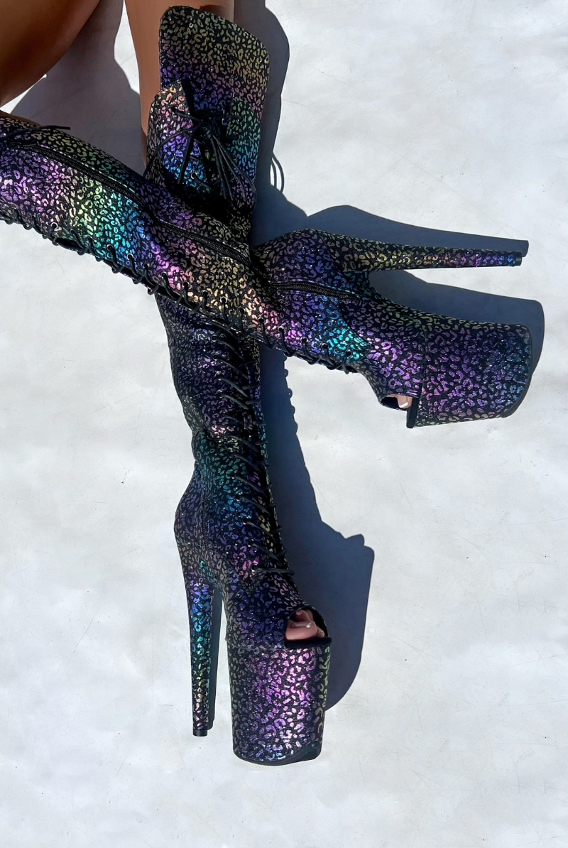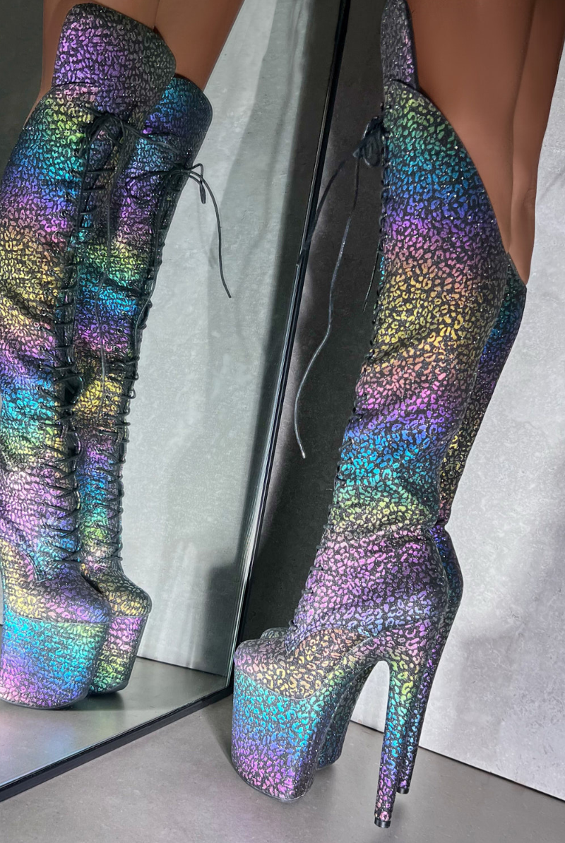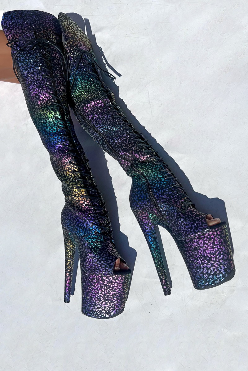 Hella Heels Jungle Over The Knee 8inch Boots - Moonlight Leopard