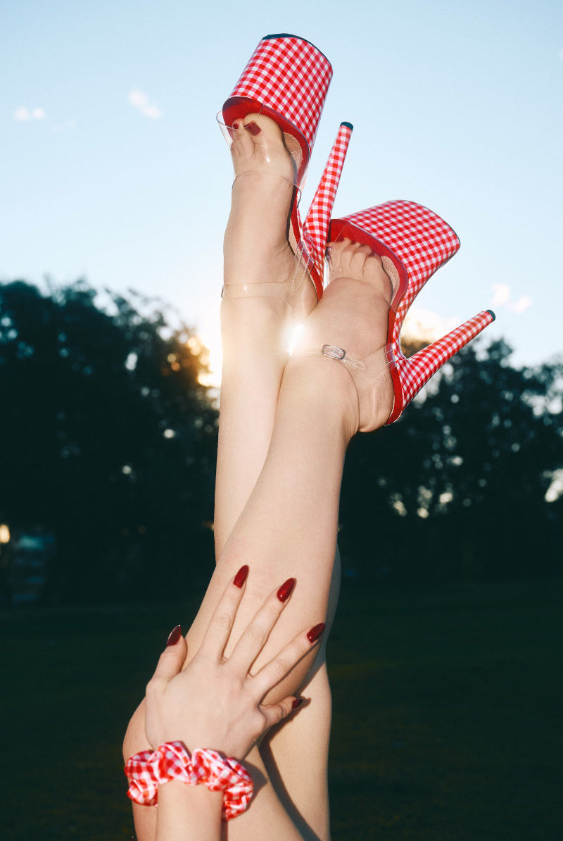 Hella Heels Gingham 8inch Stilettos - Red/White