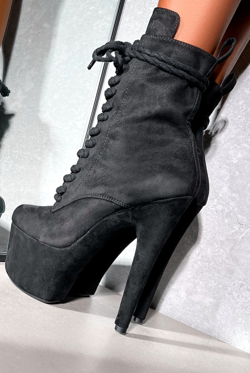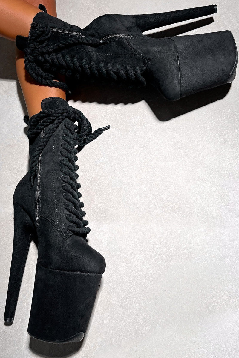 Hella Heels BabyDoll All Tied Up 7inch Boots - Black Rope