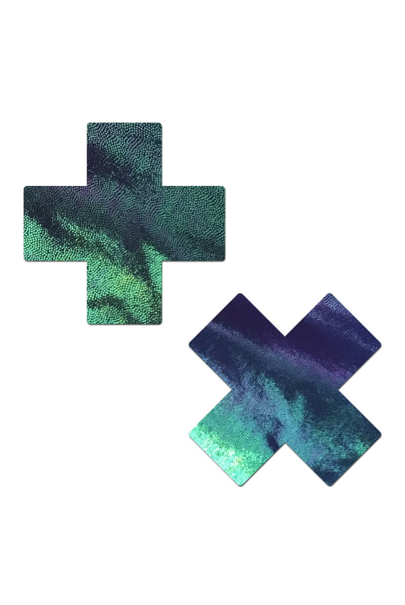 CXIX Aphrodite Bodysuit - Teal Iridescent Rhinestone Drip