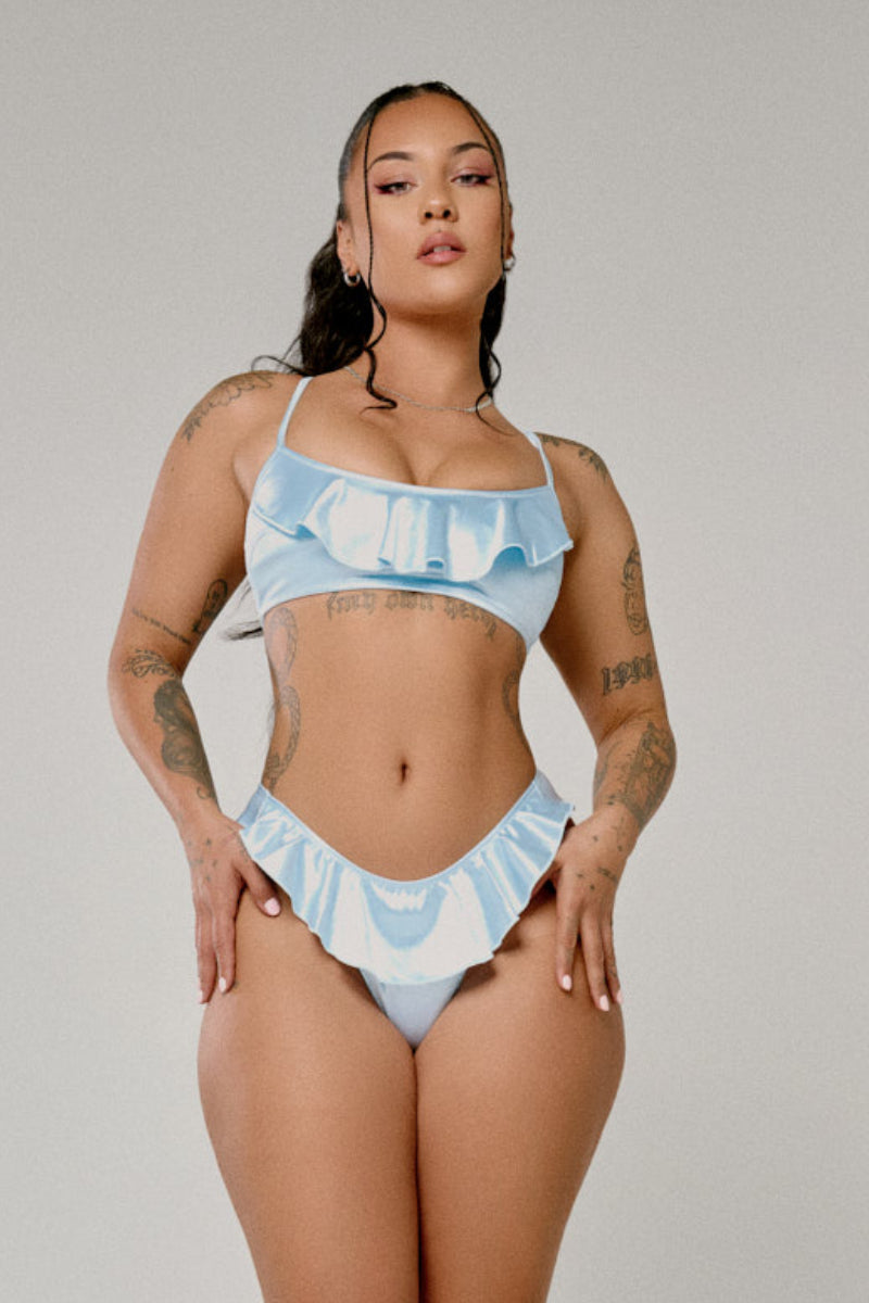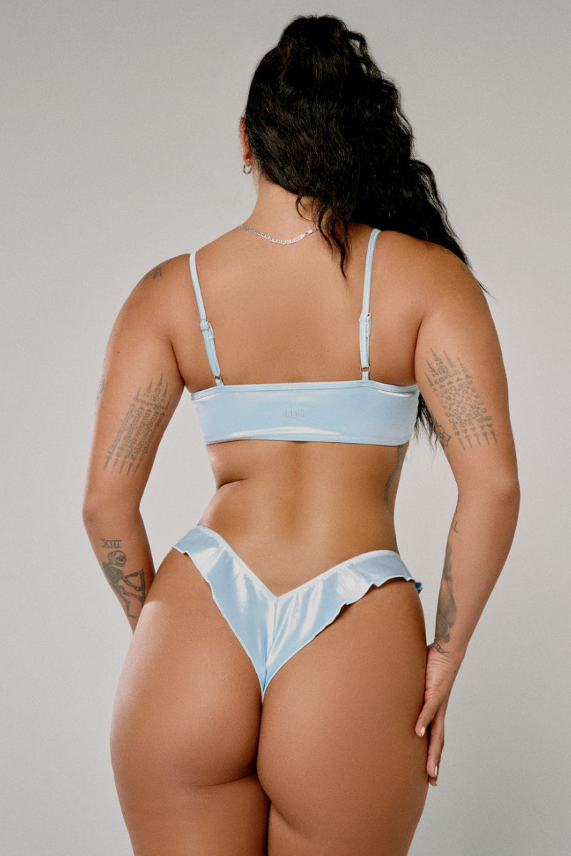 CXIX X HOAH Pillowtalk Ruffle Scoop Top - Blue Satin