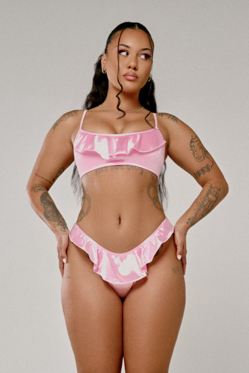CXIX X HOAH Pillowtalk Ruffle Scoop Top - Pink Satin