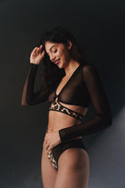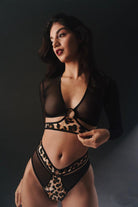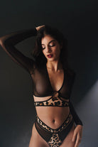 Start purring out loud, because Lynx Top is giving you that feline energy! Black mesh elastic tulle with leopard print details and sexy cuts. Are you 'kitten' me? it doesn't get better than this!