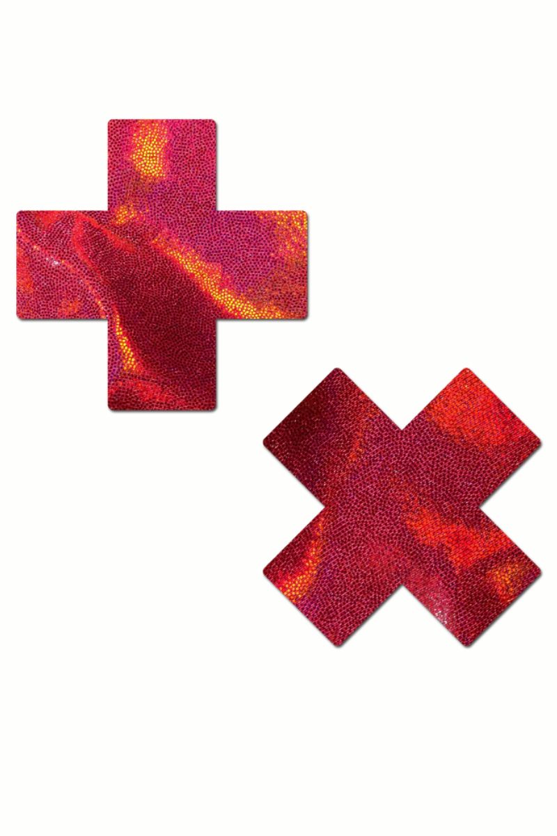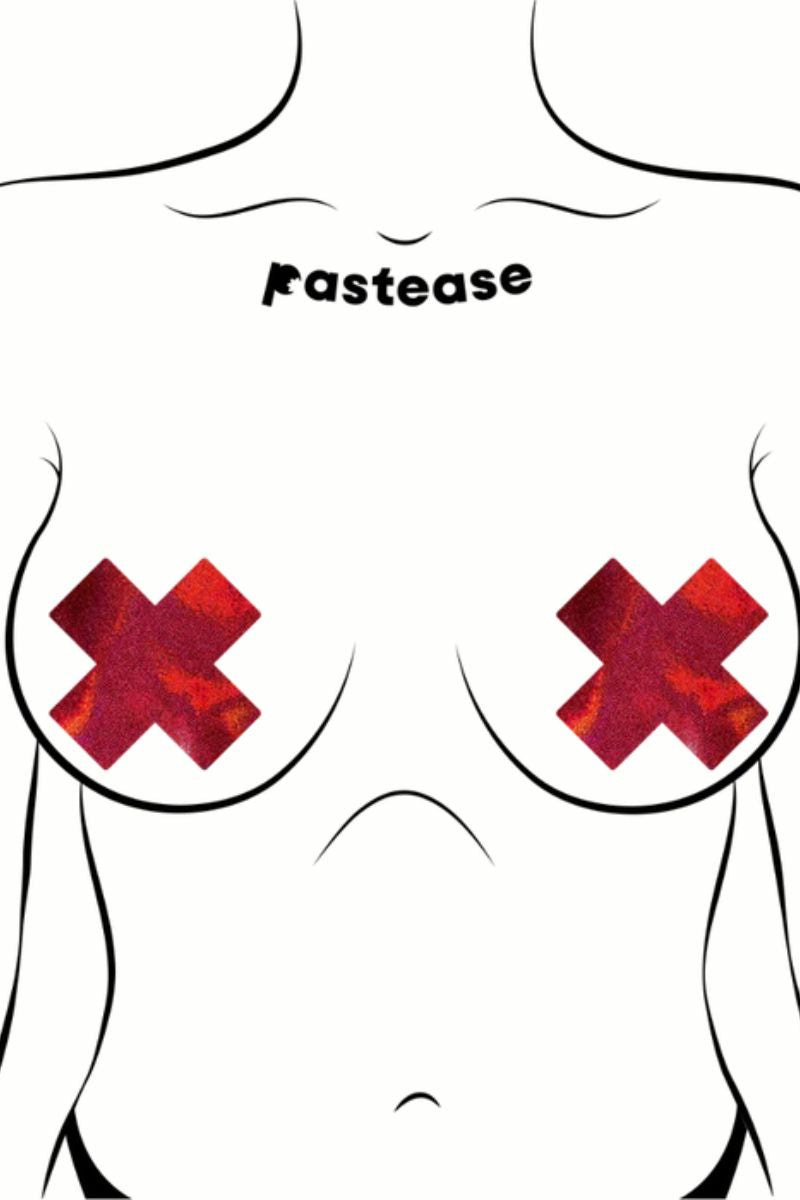 Pastease Cross Nipple Pasties - Liquid Red