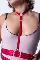 This HOT AF body harness, designed for the bold and fearless woman, hugs your curves with high-quality elastic. Featuring fully adjustable straps and striking hardware accents, it’s the perfect complement to pole wear, lingerie, or anything daring.