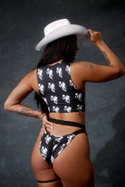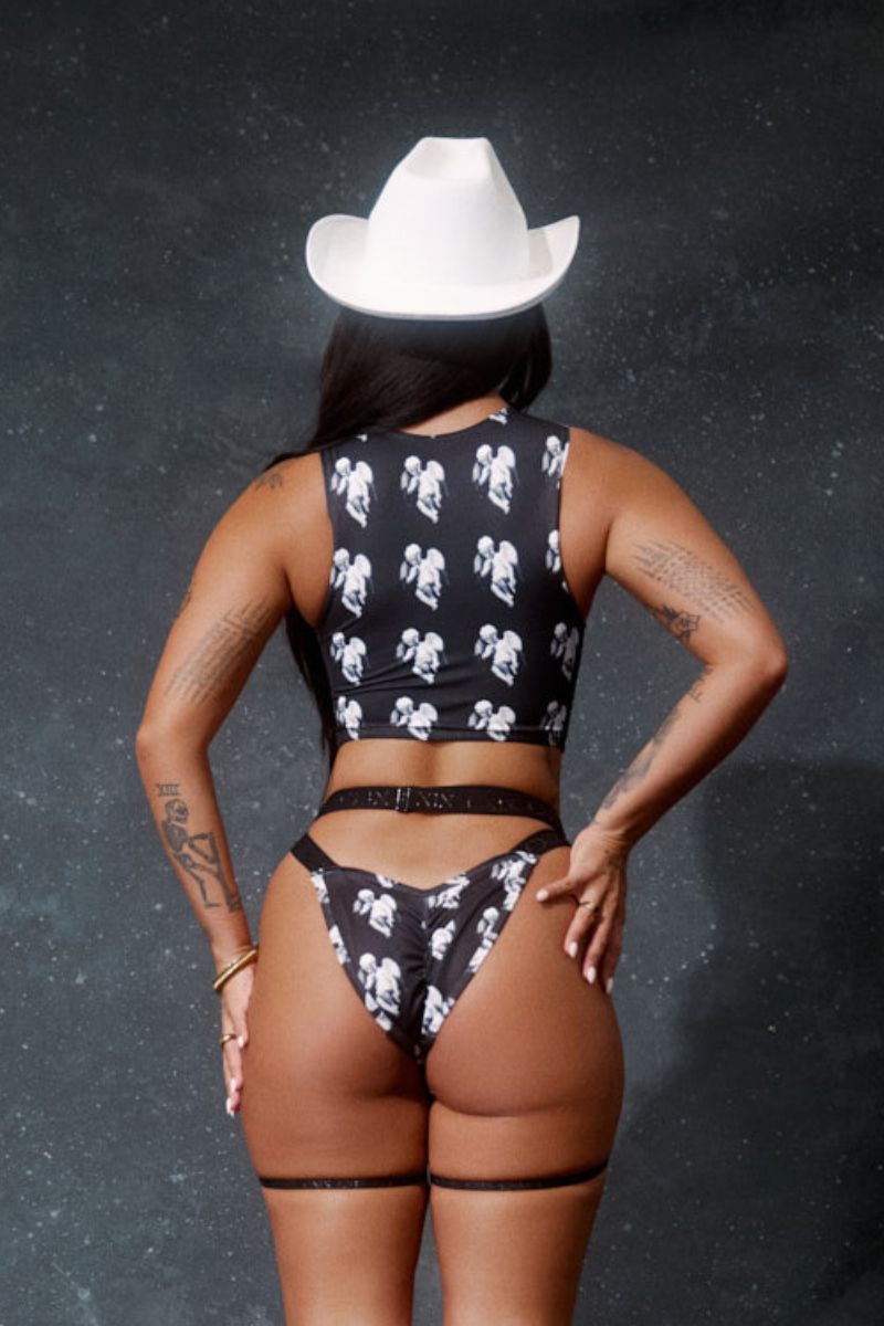 Pull the trigger on this if you’re one who plays hard to get and harder to forget. Featuring printed cupid wielding more than sweet nothings against solid black on the iconic Buckle Up Garter Top 🖤