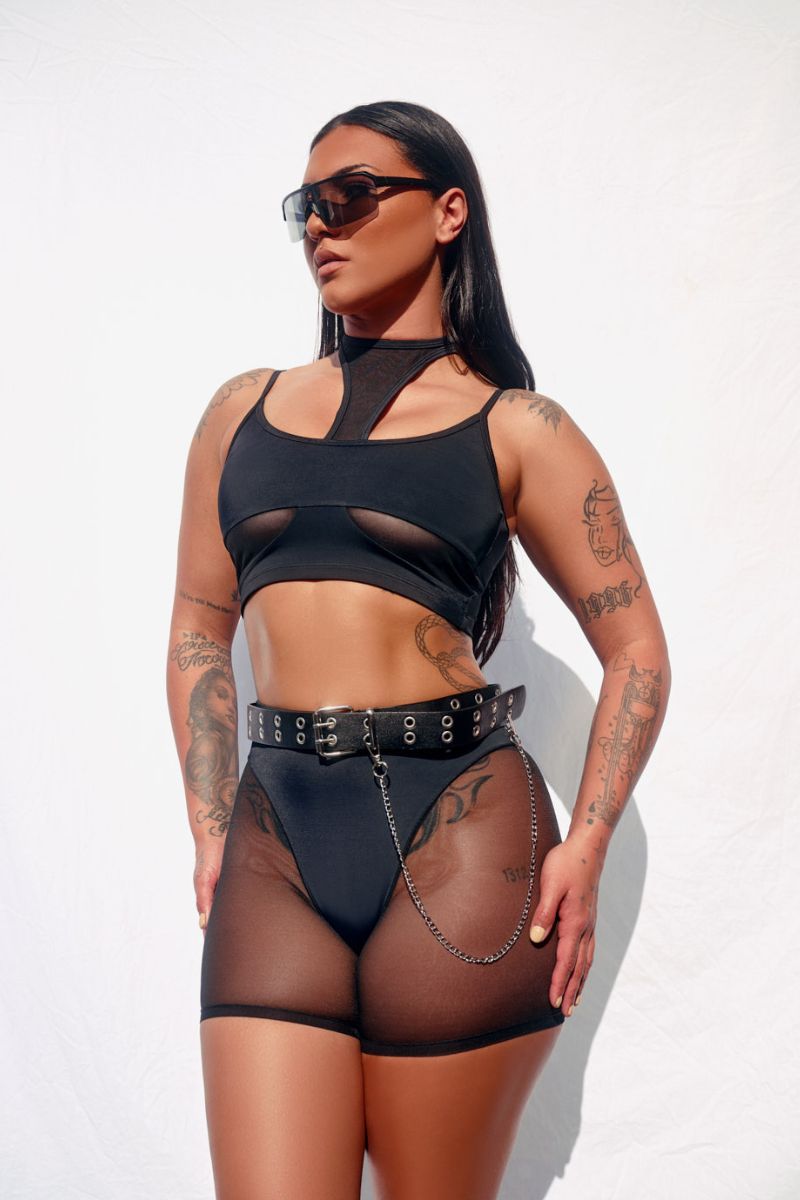 CXIX Dollhaus Mesh Biker Shorts - Black