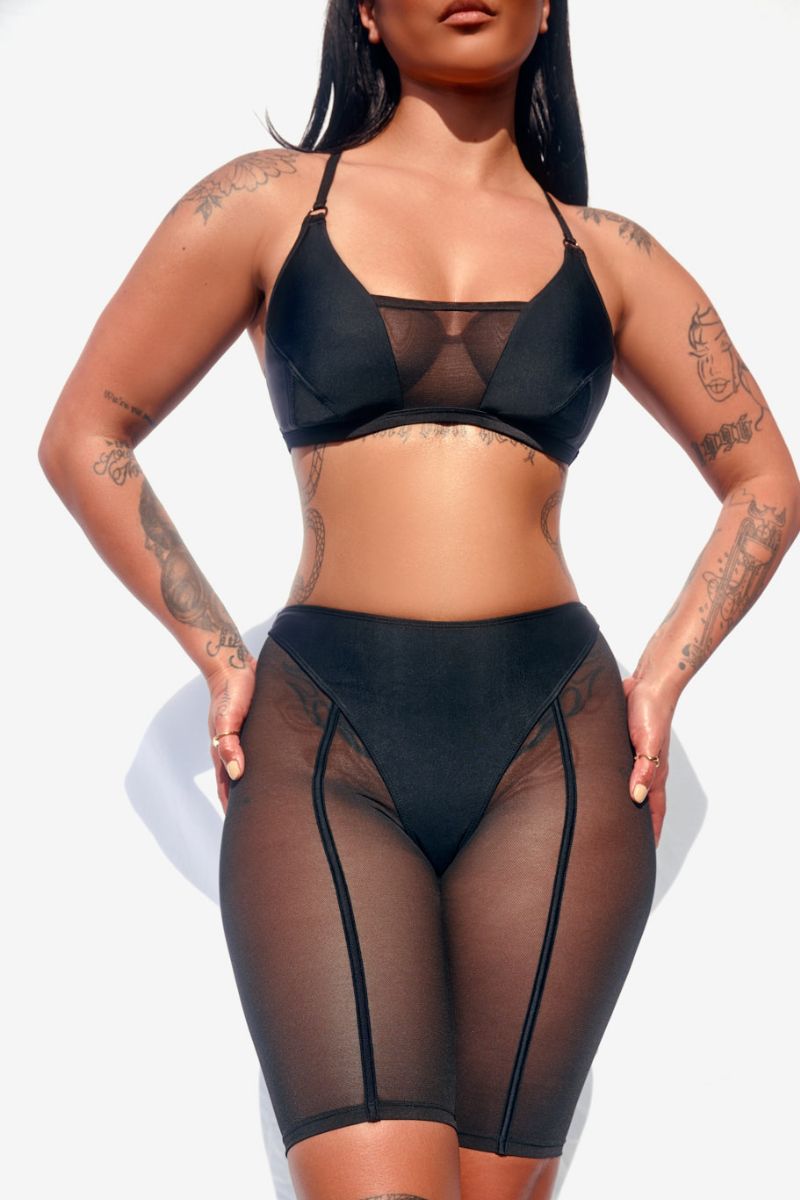 CXIX Silhouette Plunge Bralette - Black with Black Mesh