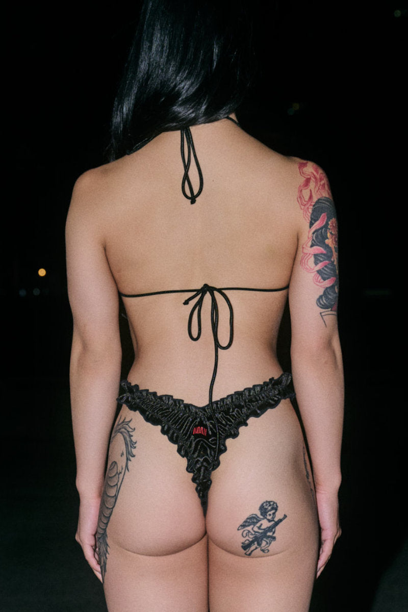 CXIX X HOAH Pillowtalk Ruffle Top - Black Satin