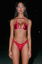 Priding ourselves with easy to take off pieces, this is a no brainer! โจ Elasticated ties ย to wear how you want, boo - classic bikini halter or front tie for a bombshell cleavage.