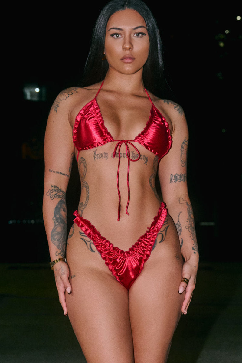 CXIX X HOAH Pillowtalk Ruffle Top - Red Satin