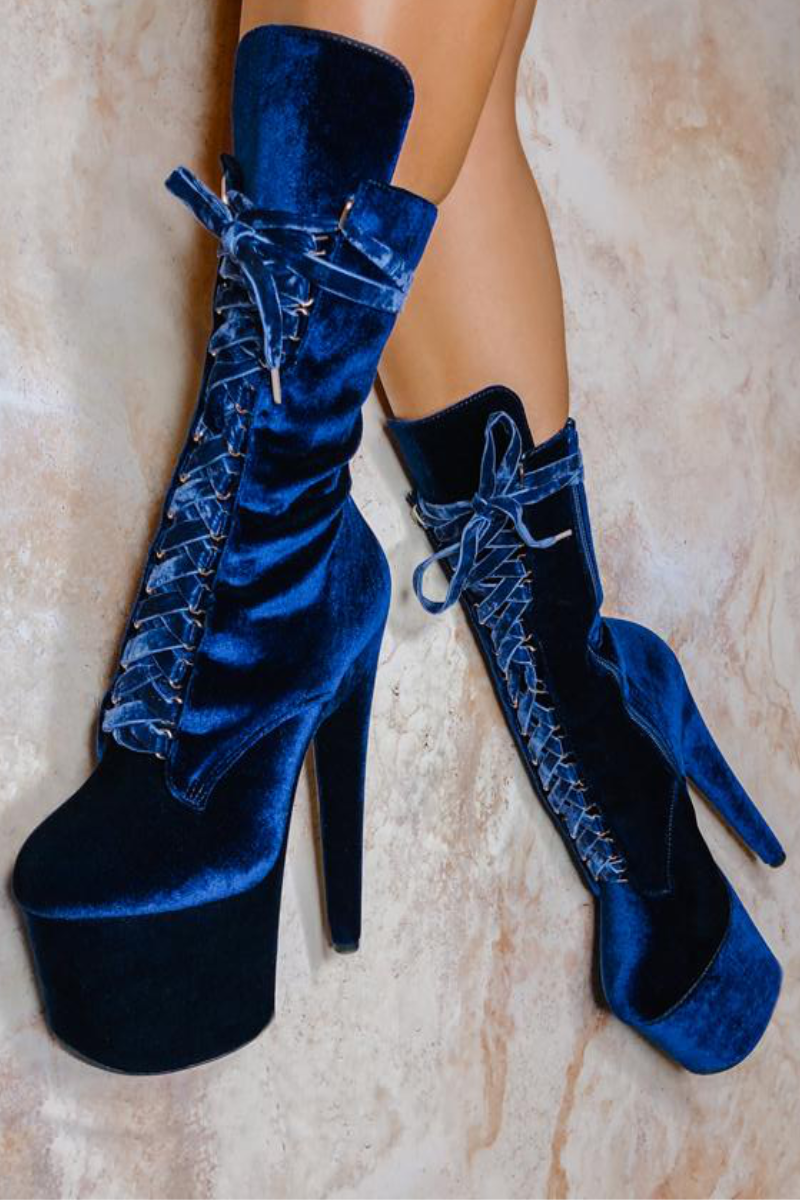 Hella Heels High BabyDoll Velvet 7inch Boots - Old Money