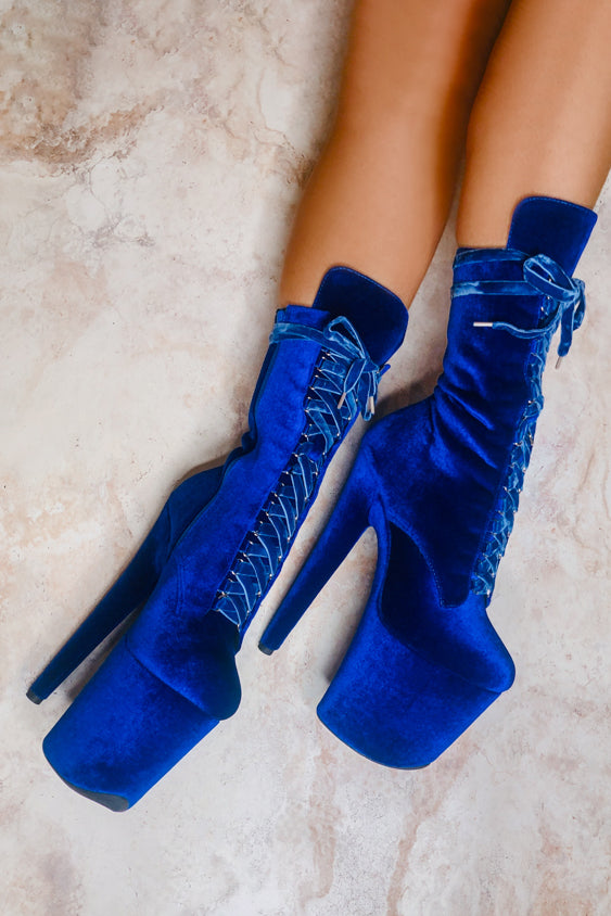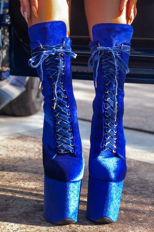 Hella Heels High BabyDoll Velvet 8inch Boots - King Pin