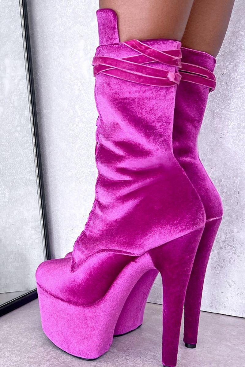 Hella Heels High BabyDoll Velvet 7inch Boots - Cabaret
