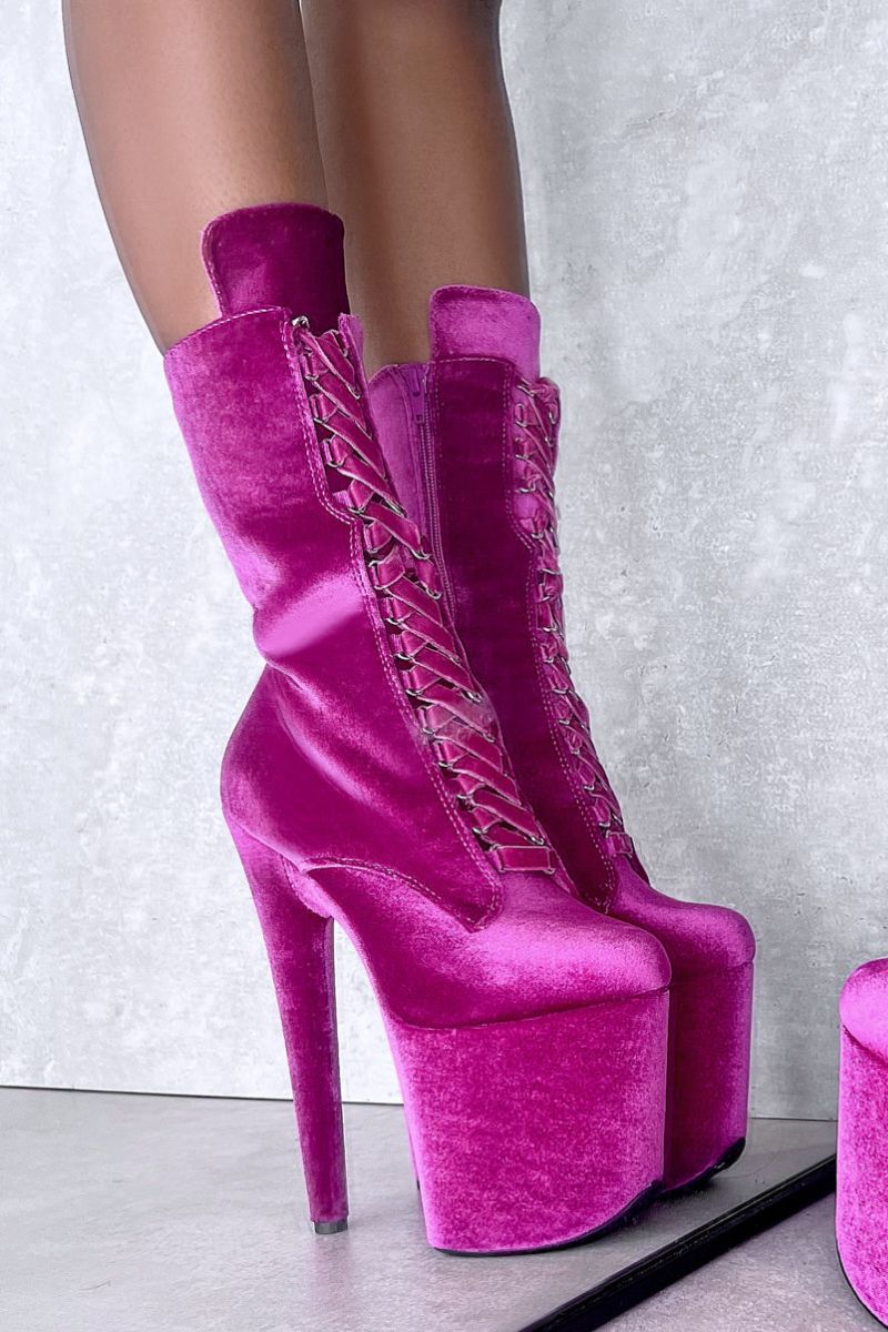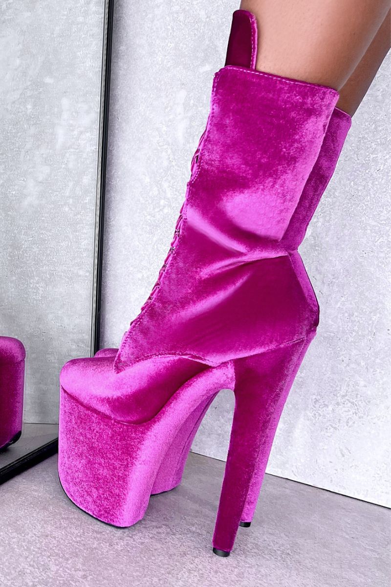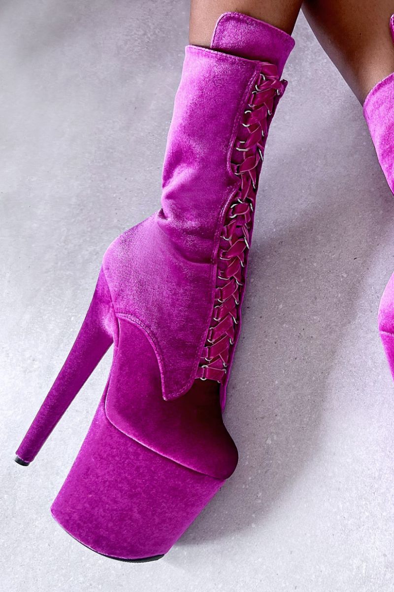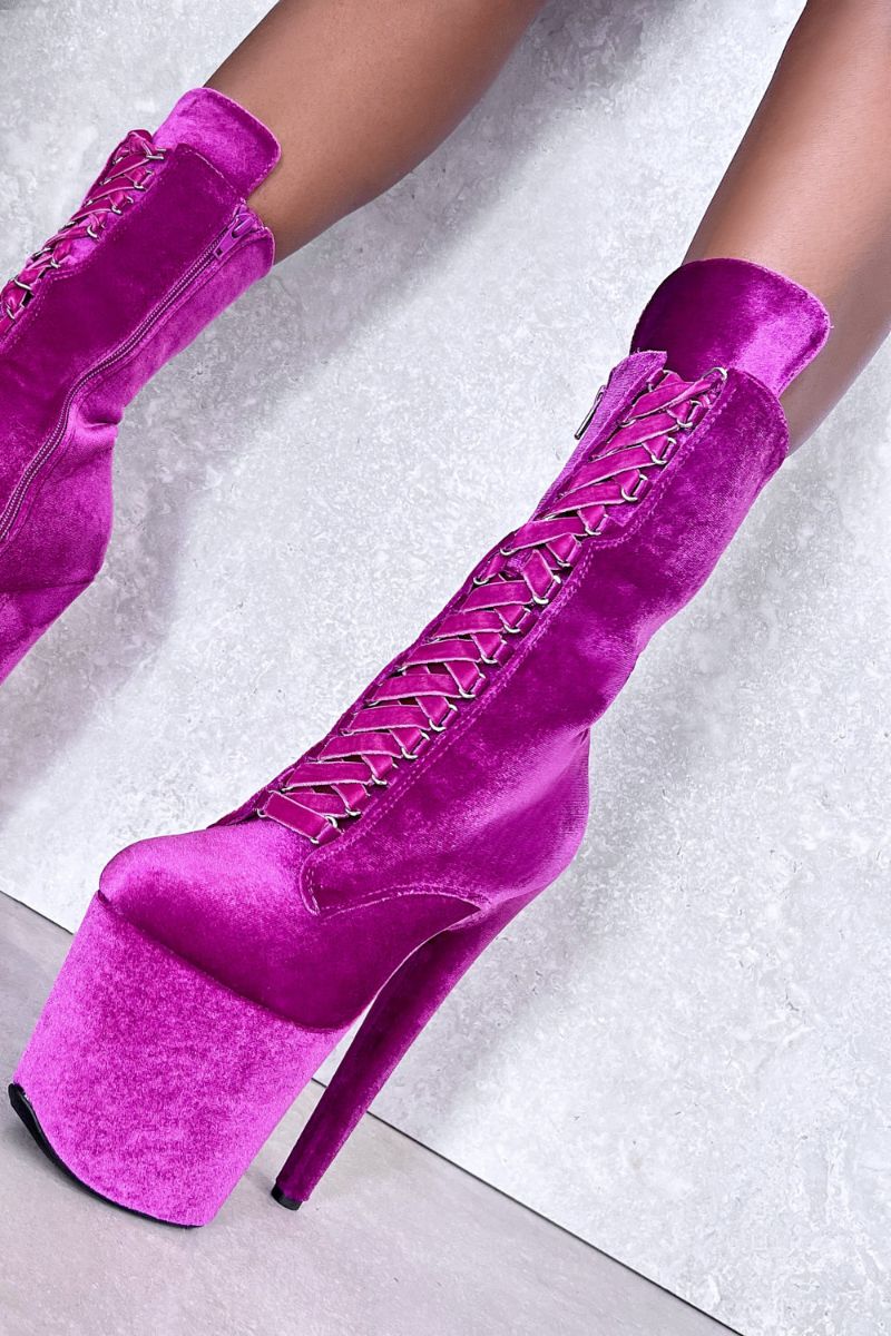 Hella Heels High BabyDoll Velvet 8inch Boots - Cabaret