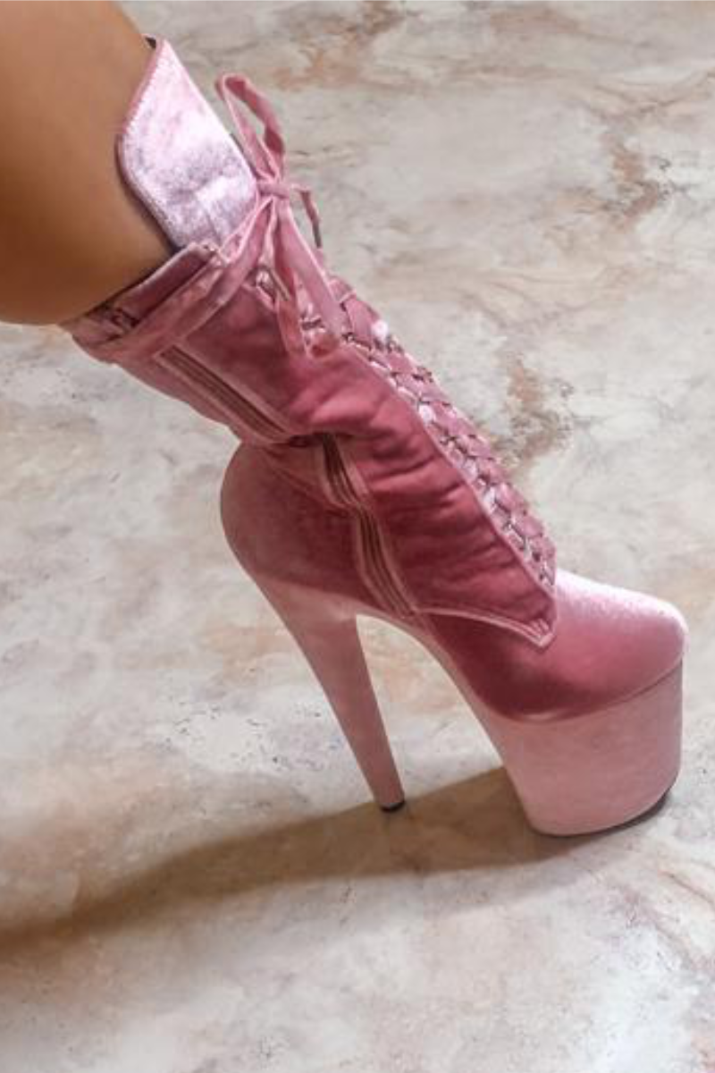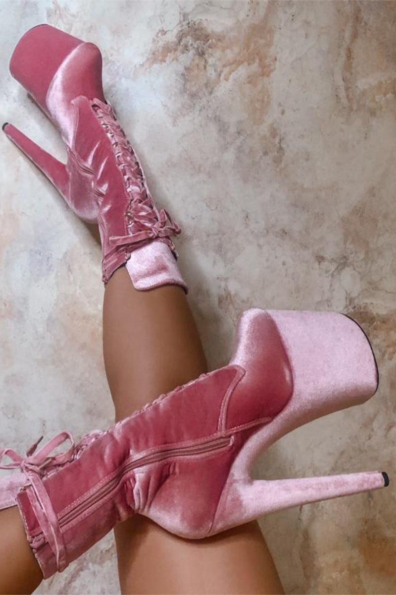 Hella Heels High BabyDoll Velvet 8inch Boots - Downtown Doll