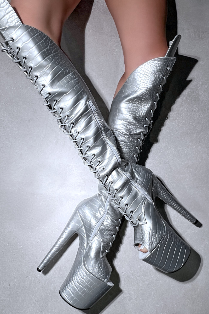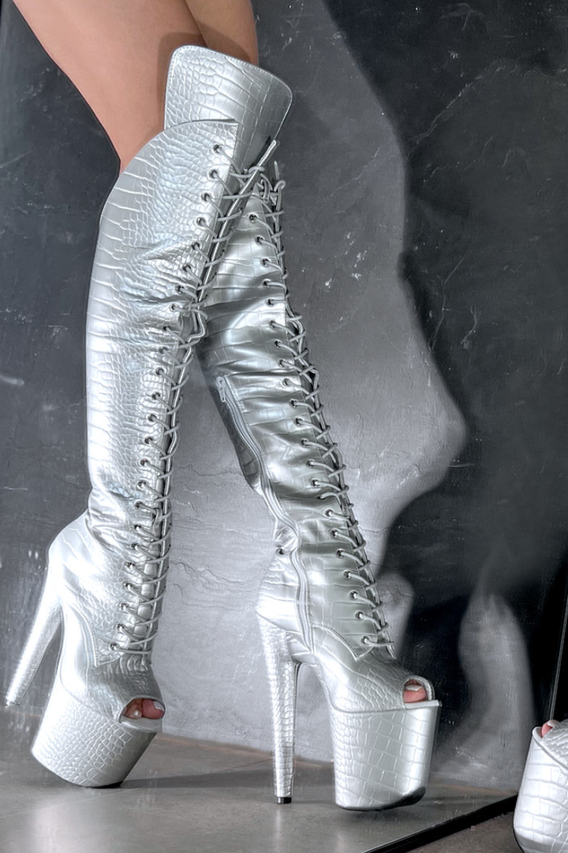Hella Heels Jungle Open Toe Over The Knee 8inch Boots - Sliving