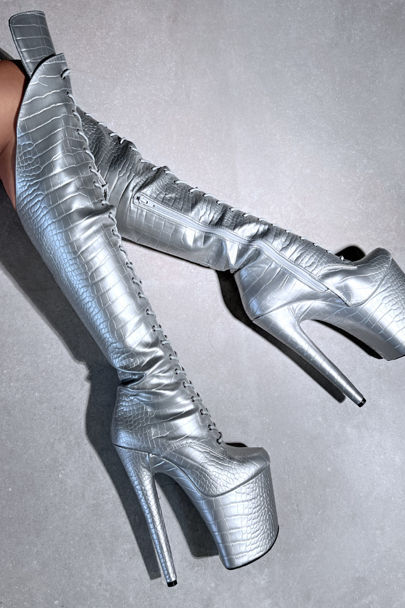Hella Heels Jungle Over The Knee 8inch Boots - Sliving