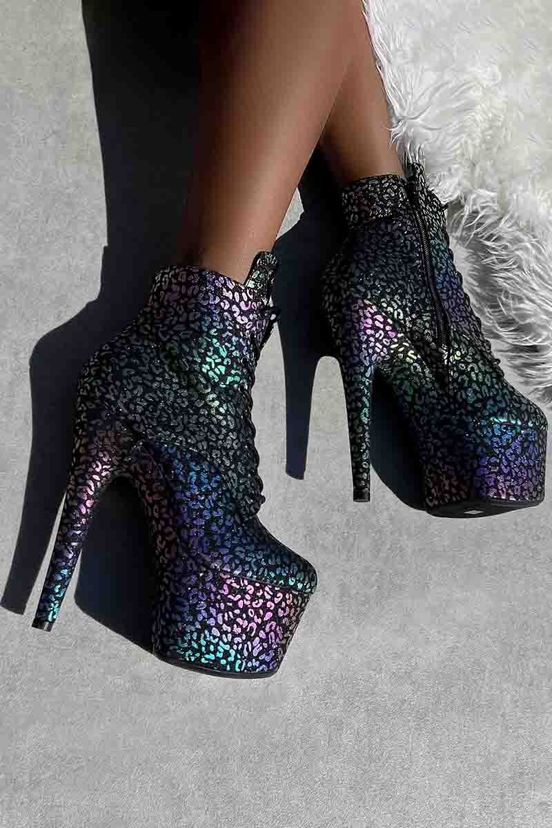 Hella Heels Moonlight Leopard 7inch Low Ankle Boots - Iridescent