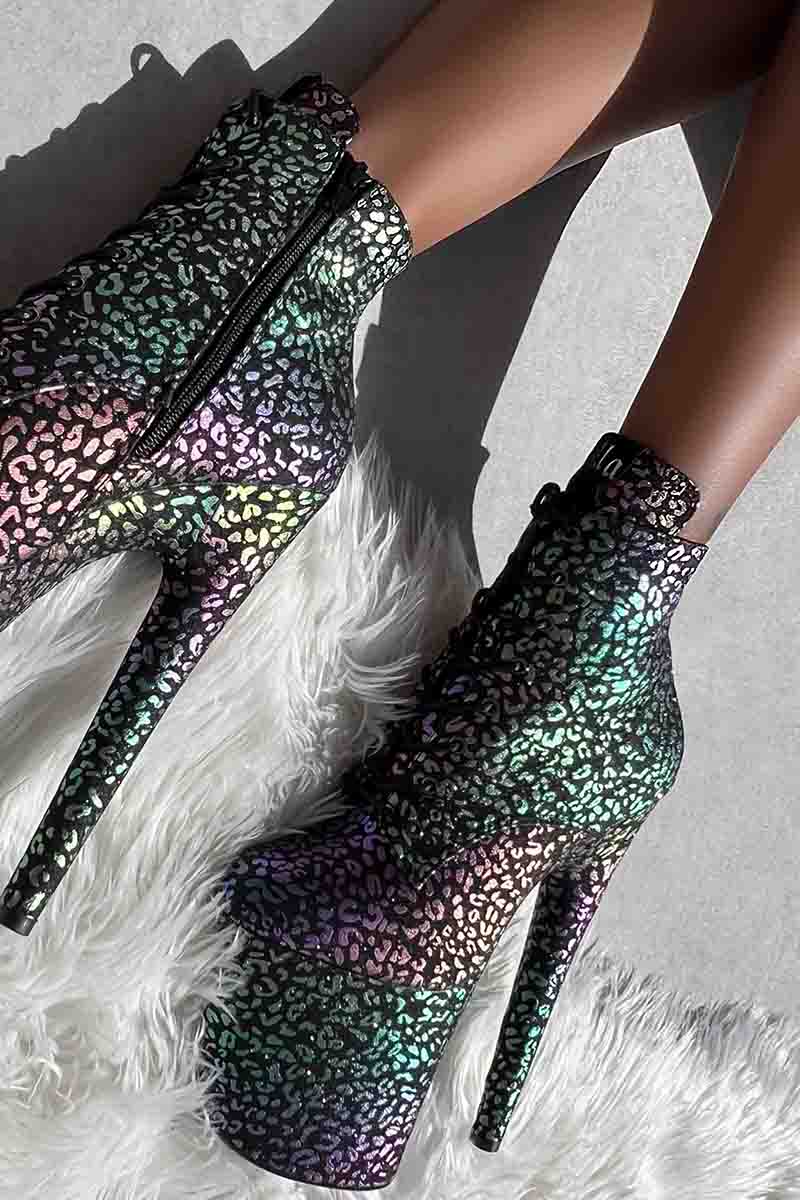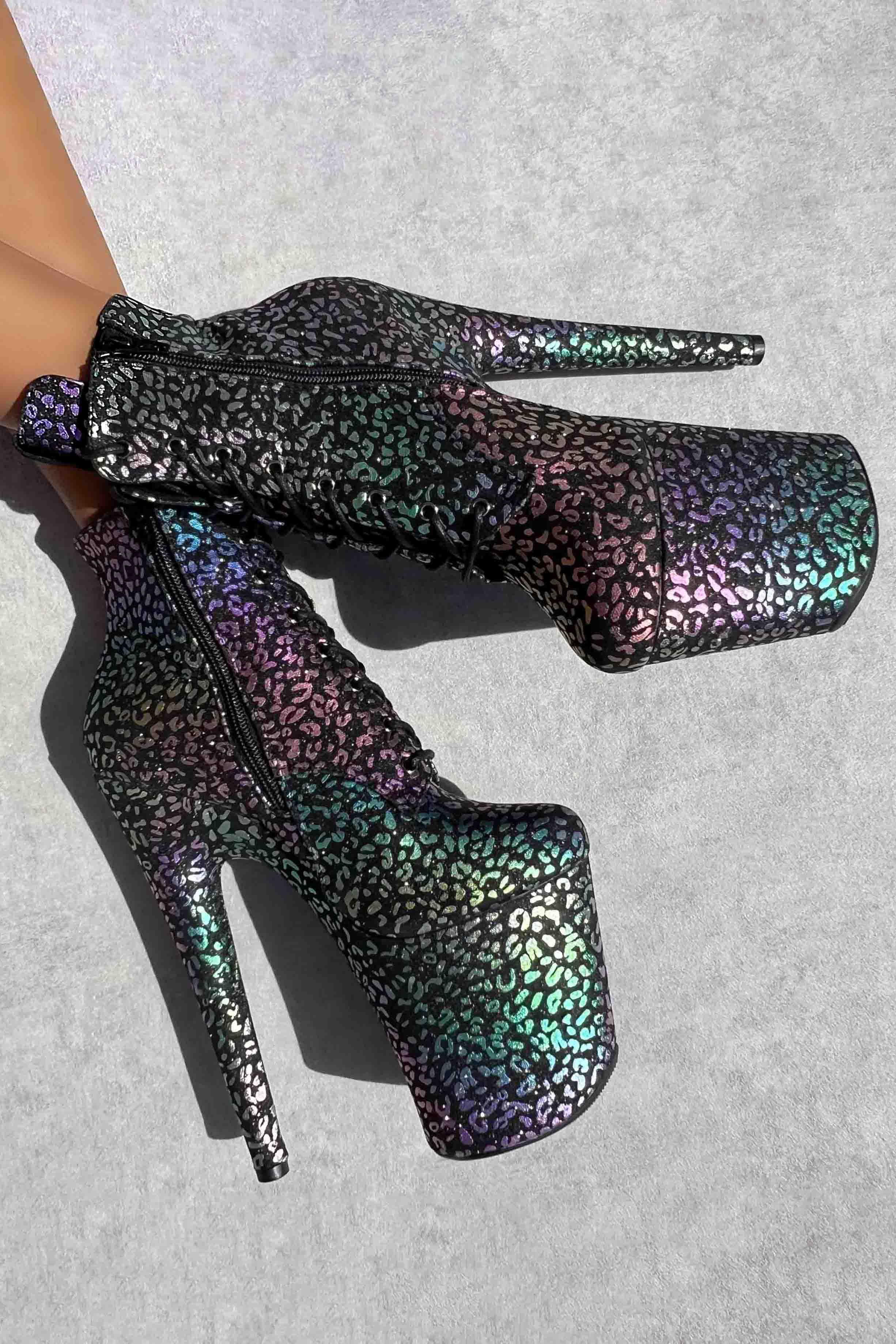 Hella Heels Moonlight Leopard 8inch Low Ankle Boots - Iridescent