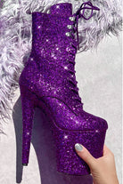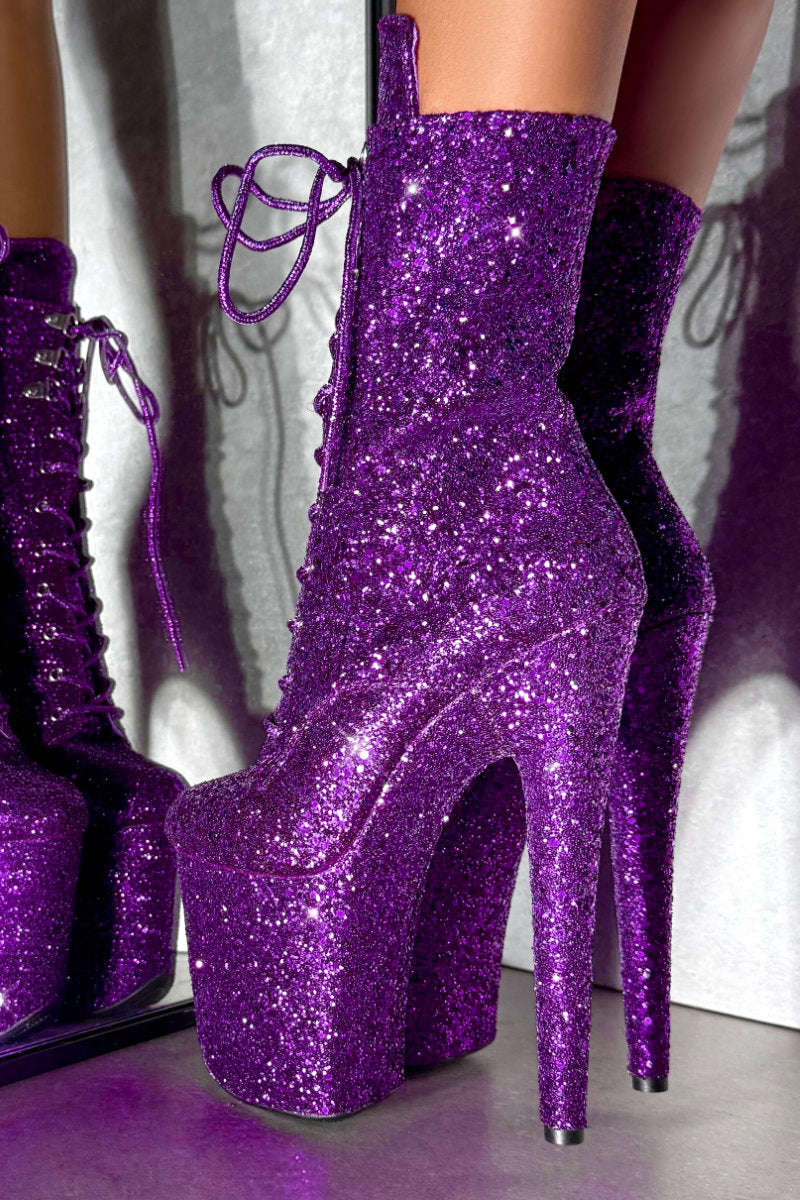 Hella Heels The Glitterati XTRA 8inch Boots - Enigma Purple