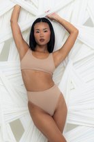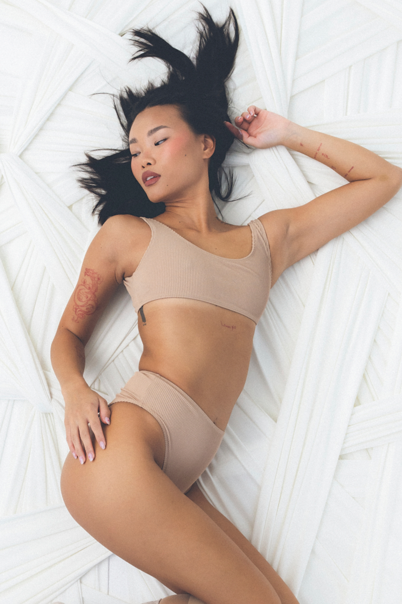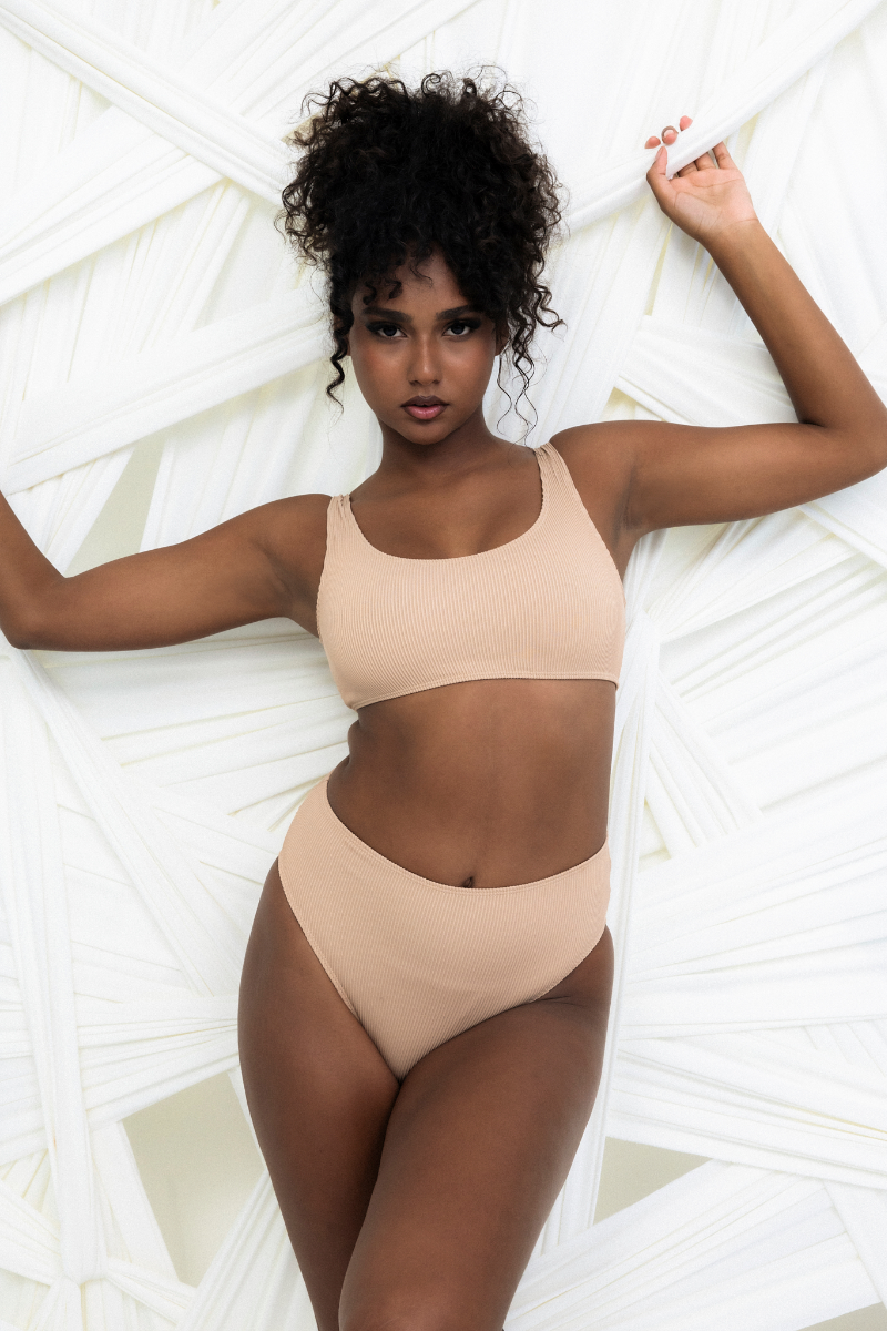 The perfect foundation. From HotCakes Essentials collection, these high-waisted bottoms are a must-have. The ribbed, fully-lined Toffee Latte fabric provides fuller coverage and a confident high-leg cut. A comfortable, back-to-basics piece you can always rely on, from studio sessions to everyday wear.