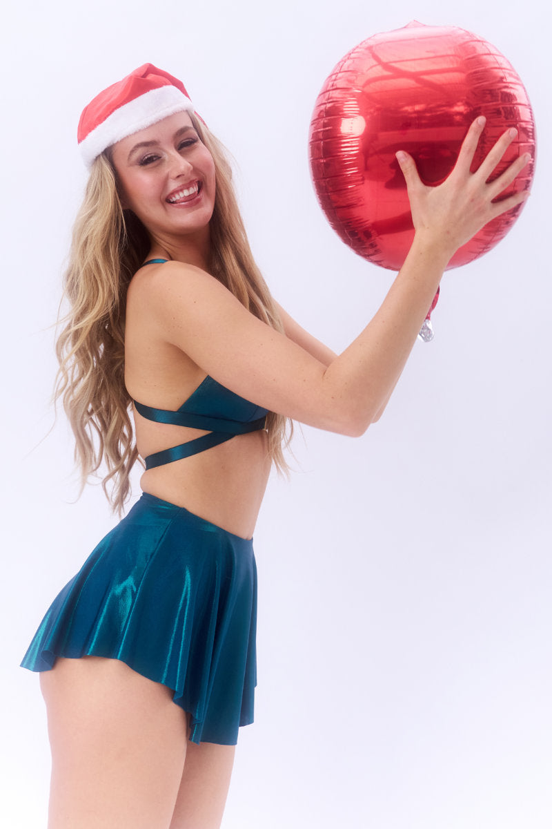 Lunalae's fan-favourite Follow Me Bra is back with a festive twist. Now in exclusive Christmas edition teal, this standout top supports and flatters all bust sizes. Featuring a gold centre clasp, elastic strap details, and non-removable padding, it offers security with adjustable straps.