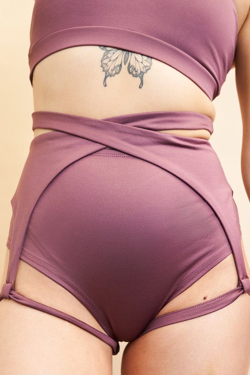 There's a new garter short in town! The Olivia shorts feature a double garter adjustable in Wrap your hips in the flirty embrace of the Lunalae Iris Crossover High Waisted Garter Shorts - Elderberry. 🌠 Flaunt your fierceness with confidence-boosting crossover waist and garter straps, while the cheeky scrunch caresses your curves. Eco-slay in style, because every move in recycled fabric is a step towards a sassier planet! #EcoFabulous #CurveConfidence 🌿💖